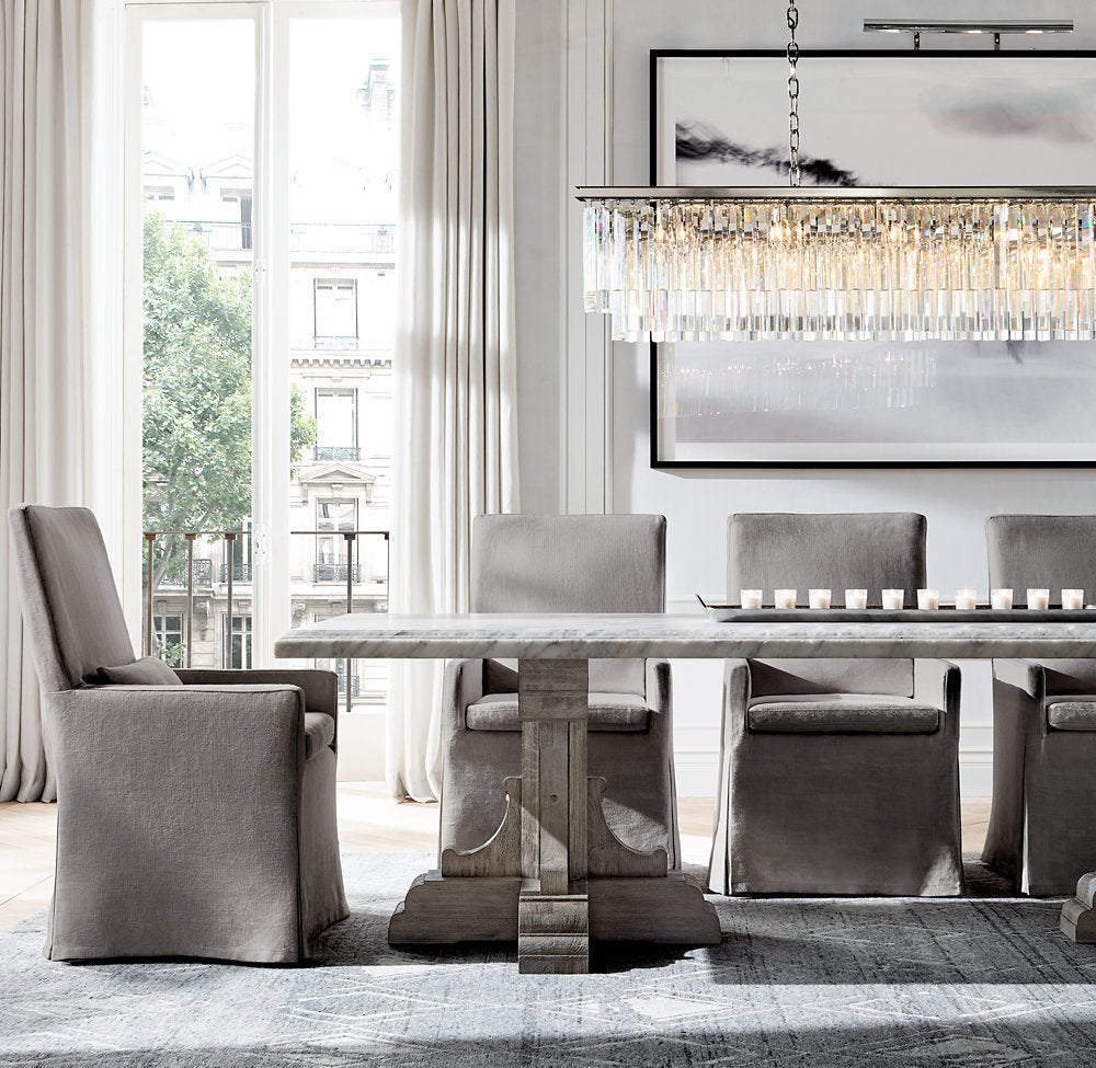 - Requires professional assembly and installation by a licensed electrician. RH delivery service does not include assembly or installation.
