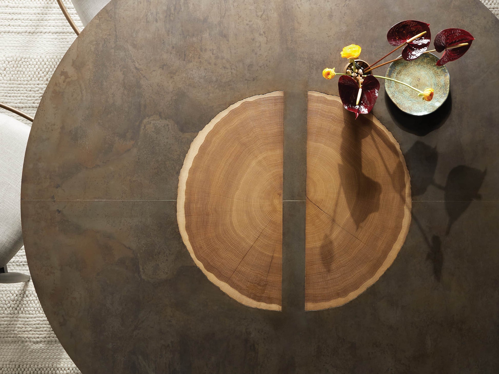 Made from panels of steel left out in the elements to age, Acacius is one of our signature collections handcrafted by a family of imaginative artists in Mexico. After developing a patina of stains and speckles, each panel is molded around the organic silhouette of reclaimed yukas, creating a finished piece as unique as the trees themselves.