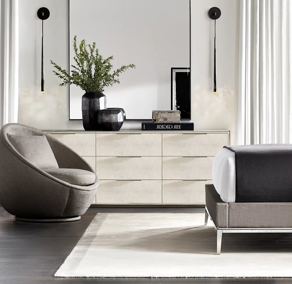 - Requires professional assembly and installation by a licensed electrician. RH delivery service does not include assembly or installation.