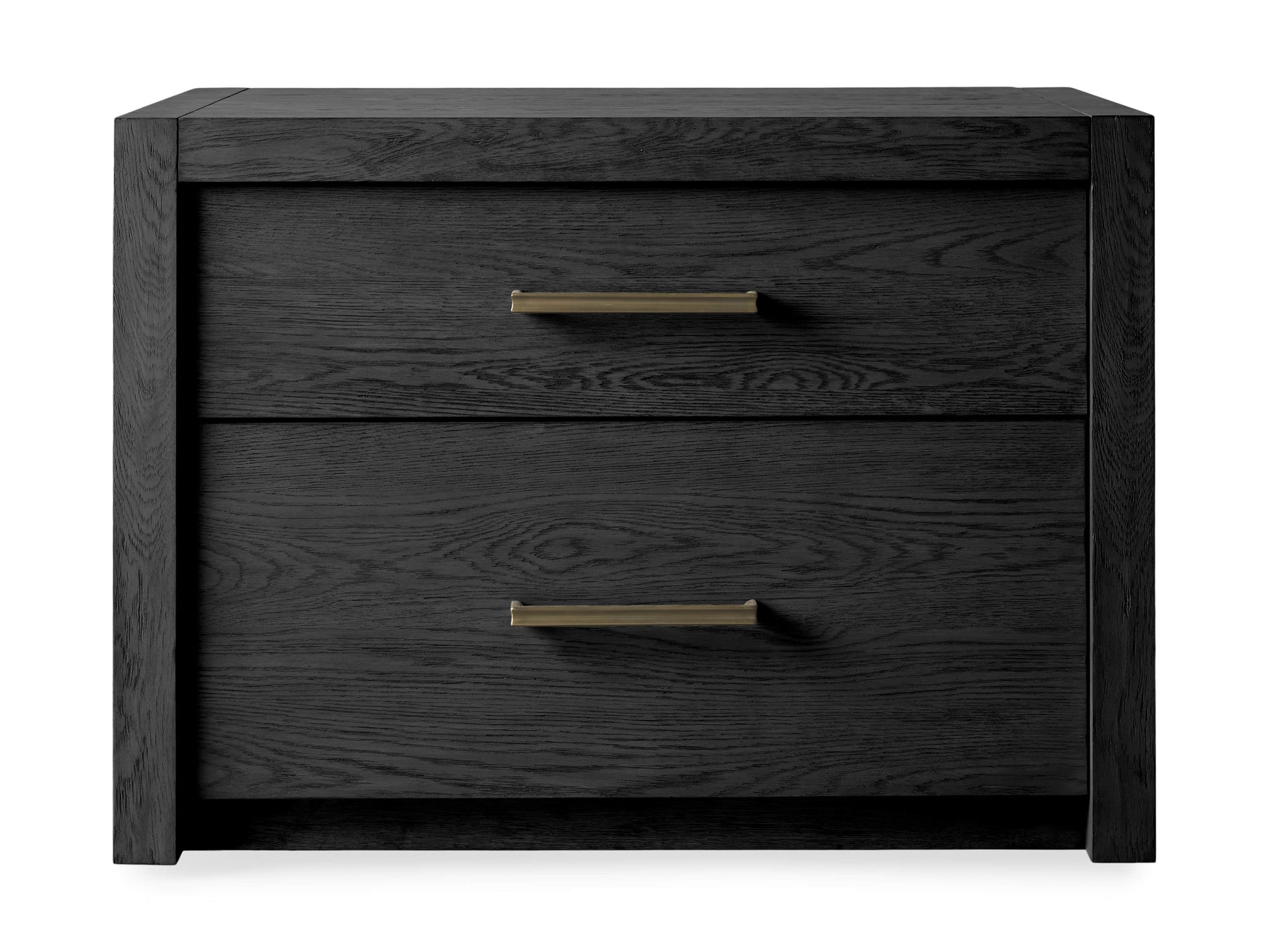 - Drawers are complemented by brass pulls.
