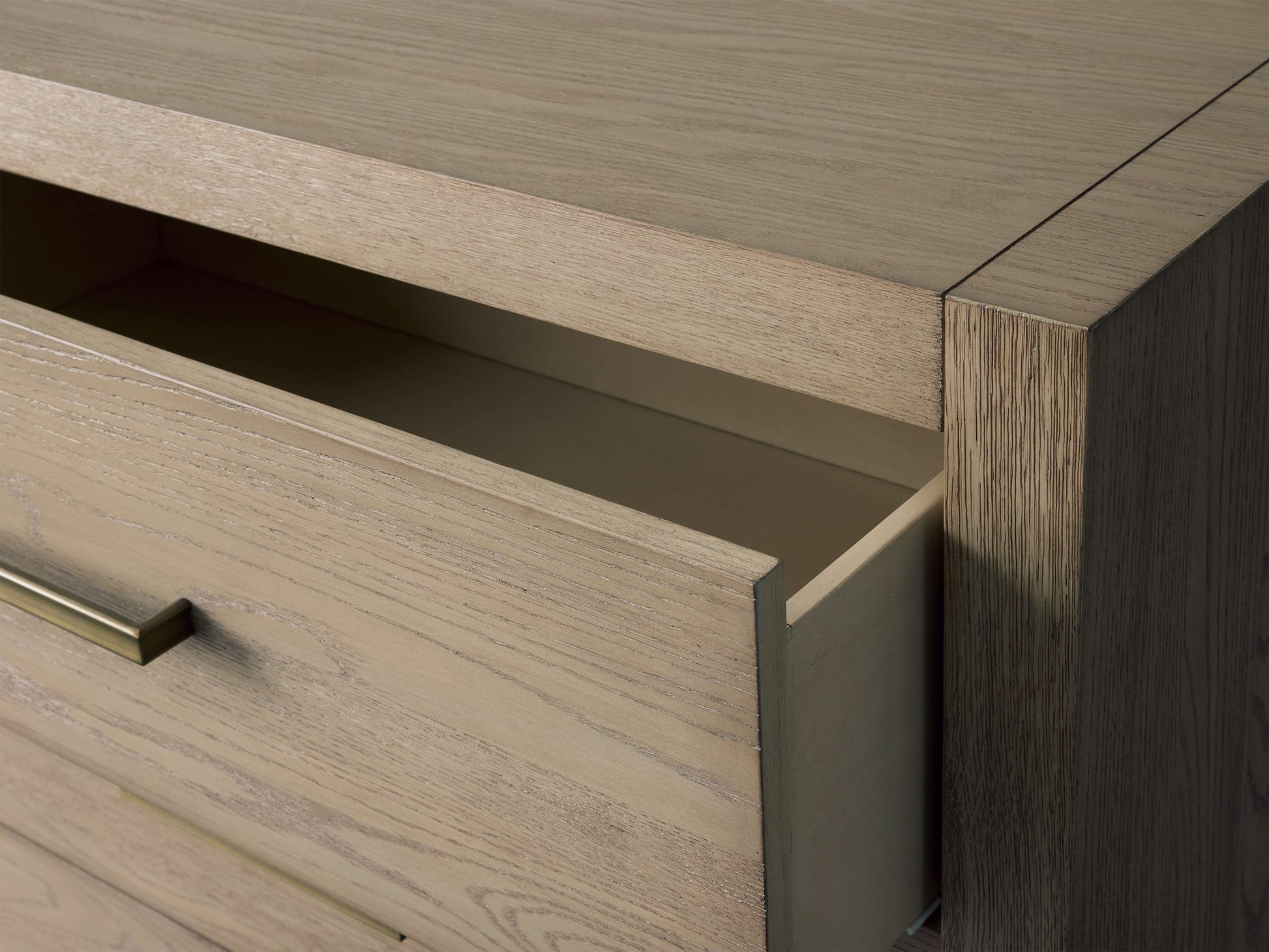 Featuring minimalist silhouettes, our Bodhi Bedroom Collection is a twist on rustic design that honors the beauty of simple construction. Meticulously crafted by Indonesian artisans, each piece is hand-finished using a six-step process to achieve an elegant, aged patina that emphasizes the gorgeous grain of natural white oak wood. Solid brass pulls finished in a subtle champagne color complement the artfully applied finishes and refined style of the collection.