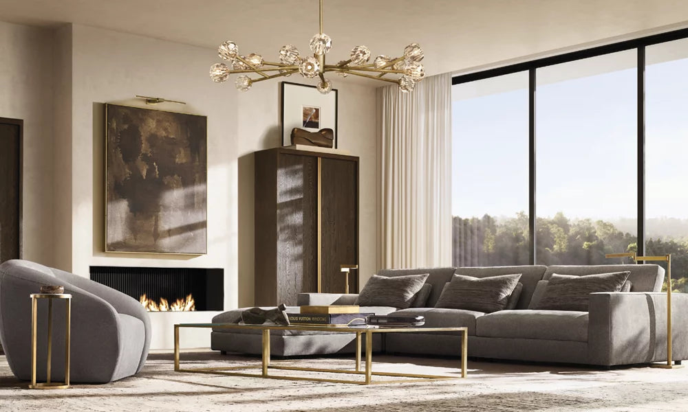 - Requires professional assembly and installation by a licensed electrician. RH delivery service does not include assembly or installation.