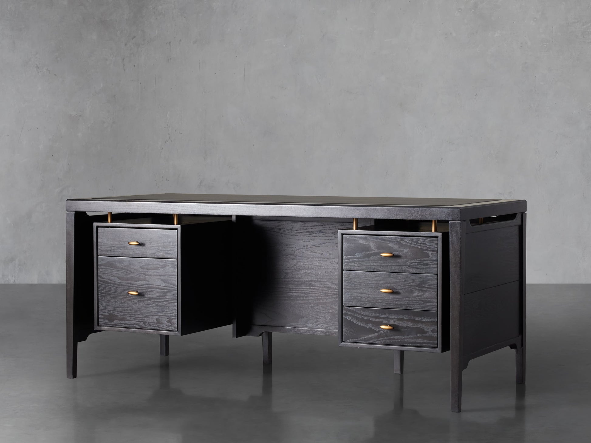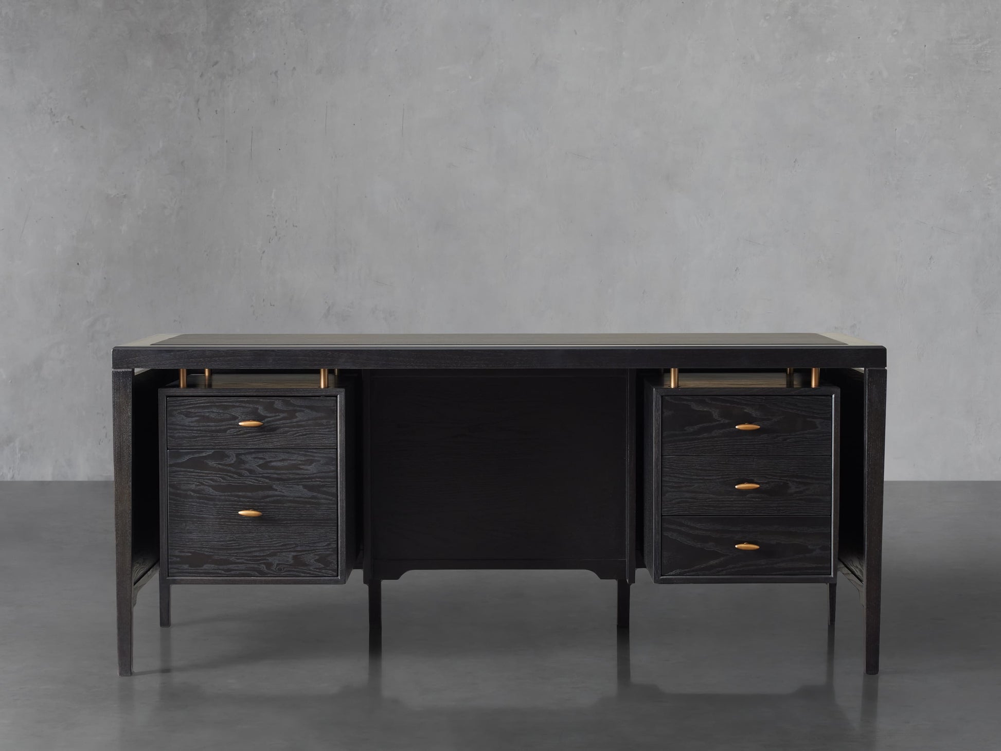 A modern classic, our Brock Office Collection’s understated aesthetic features elegant lines and a deep, hand-stained finish. Ample workspace and subtle, burnished brass hardware elevate Brock’s midcentury style, complementing natural ash wood with sophisticated detailing.