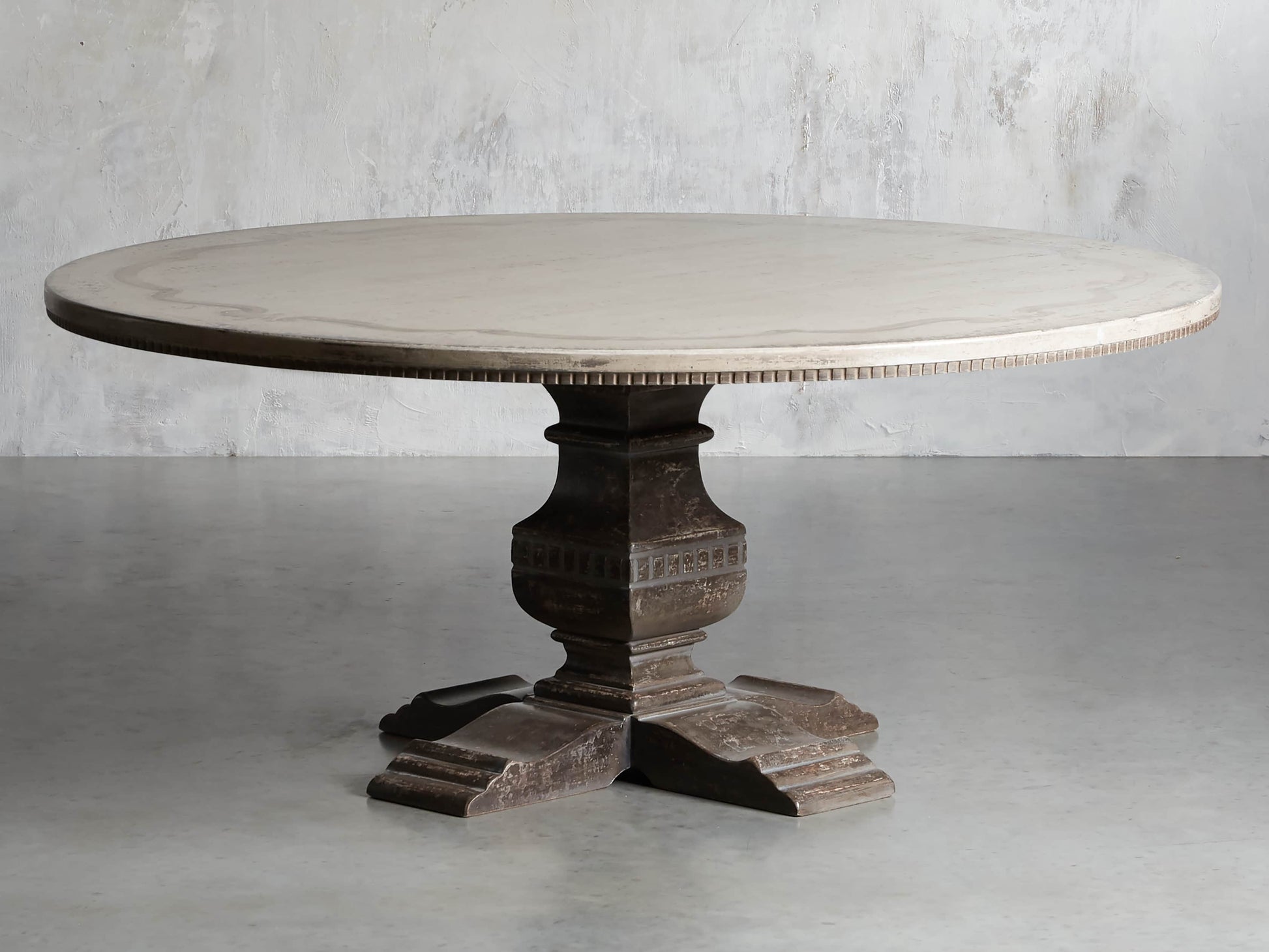 - A hand-painted ribbon border adds elegant detail to this tabletop.