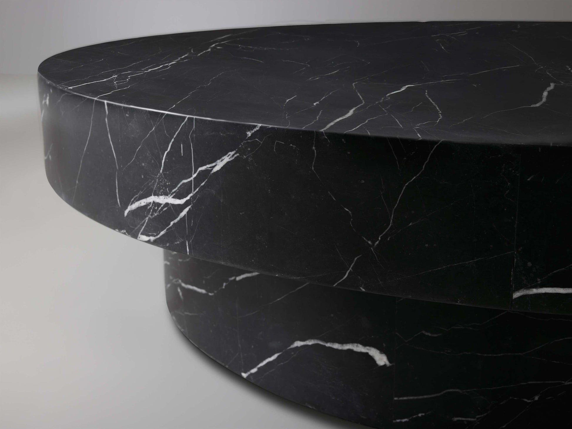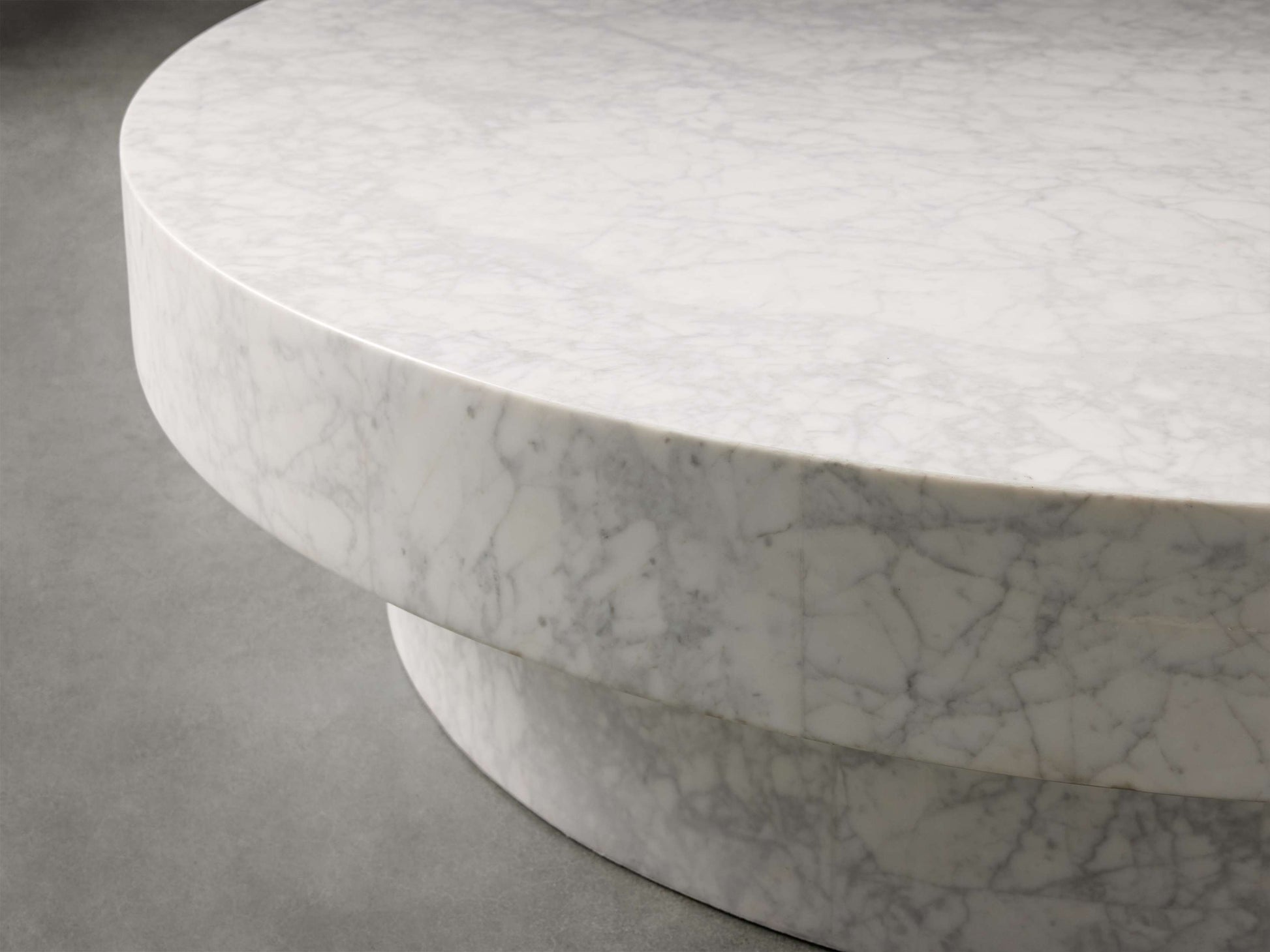- Cinzia tables feature low-profile silhouettes with plinth-style bases.
