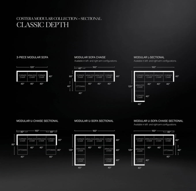 - Classic 3-Piece Modular Sofa Overall: 120"W x 40"D x 32"H