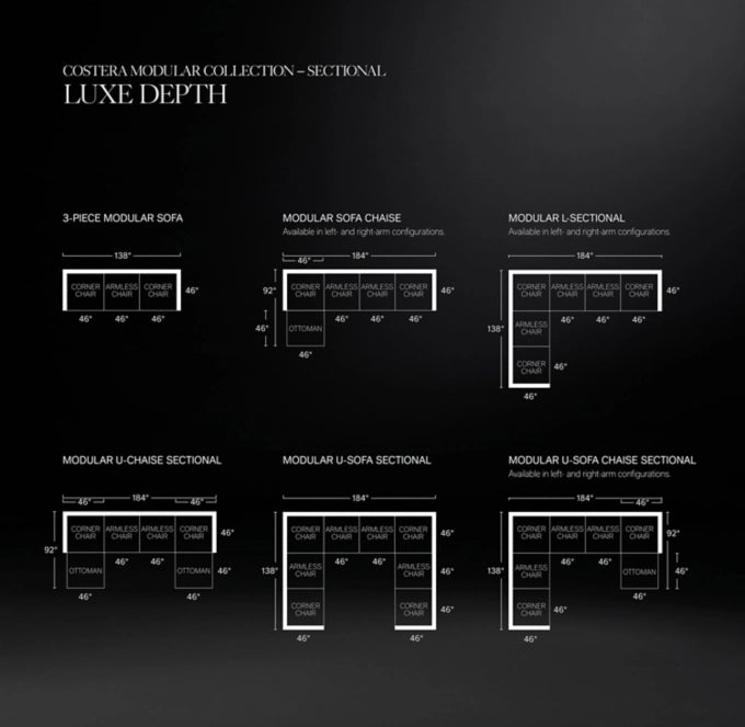 - Luxe 3-Piece Modular Sofa Overall: 138"W x 46"D x 32"H