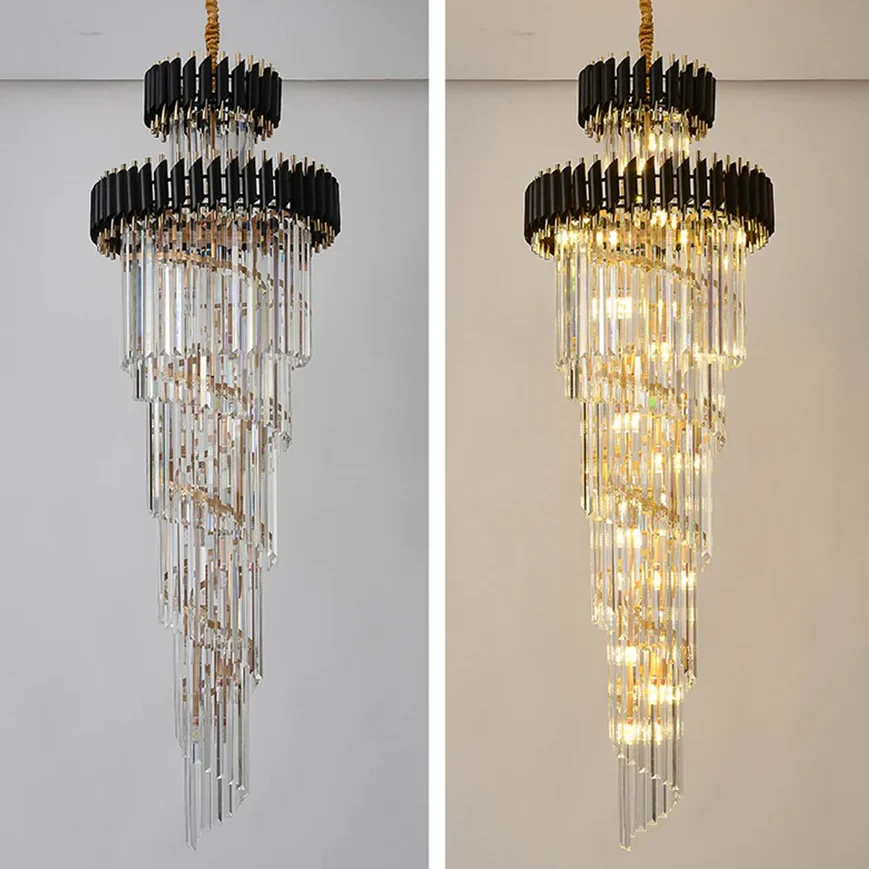 Just as its imperial namesake conquered kingdoms, this stunning crystal spiral chandelier is sure to conquer the gaze and affection of all who behold it. The perfect fixture for a grand staircase, entryway, or ball room in commercial and residential settings alike. Available in either black or gold finish in a variety of sizes. |