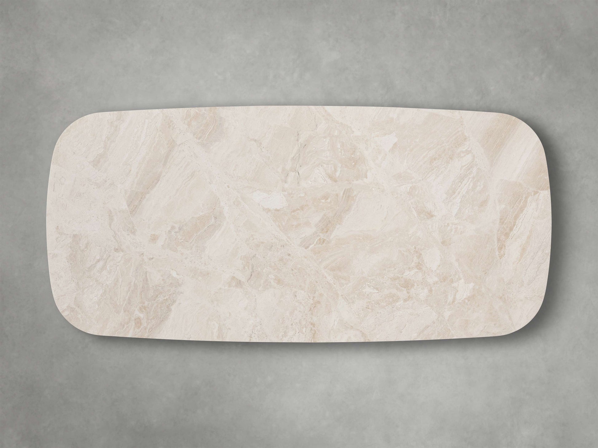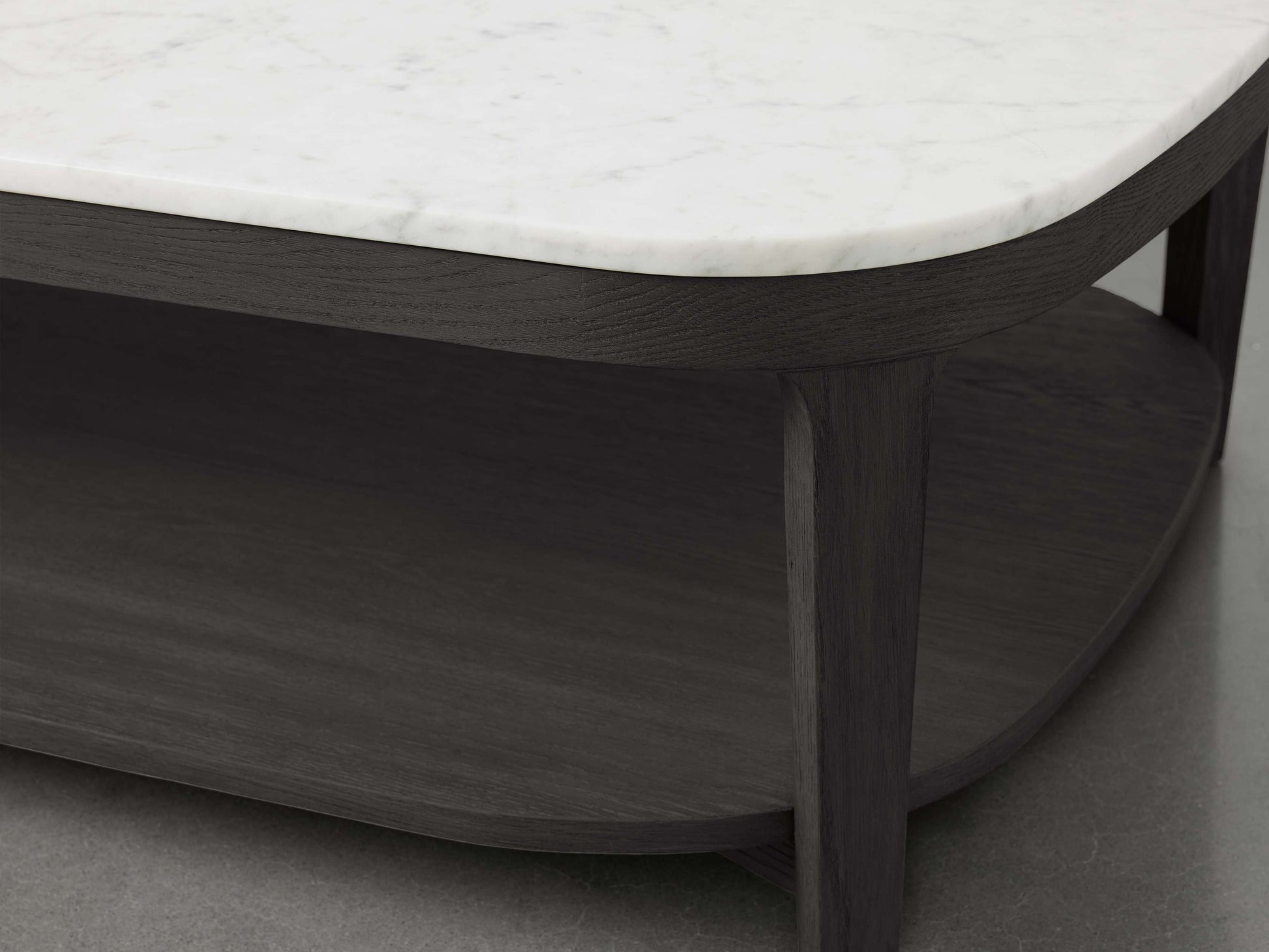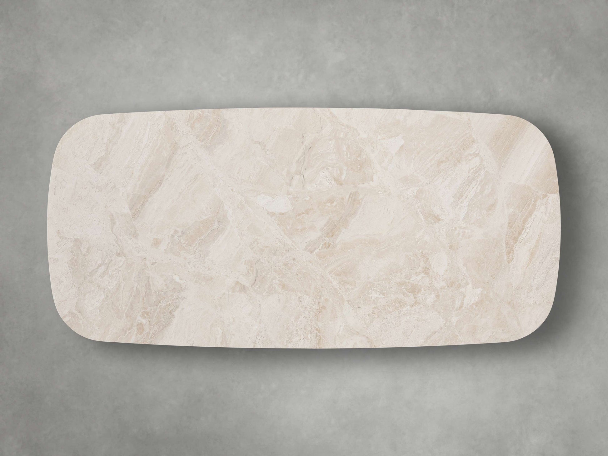 Crafted from oak wood with beautiful hand-applied finishes, our Danny Collection features gently curved silhouettes that elevate any aesthetic with your choice of elegant white marble or cream marble tabletops.