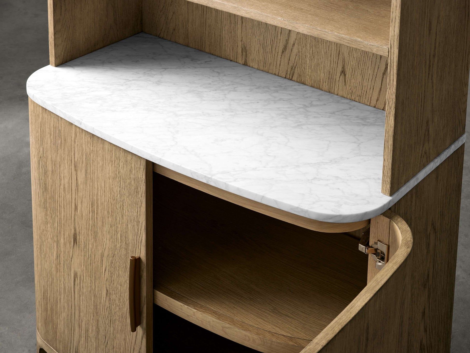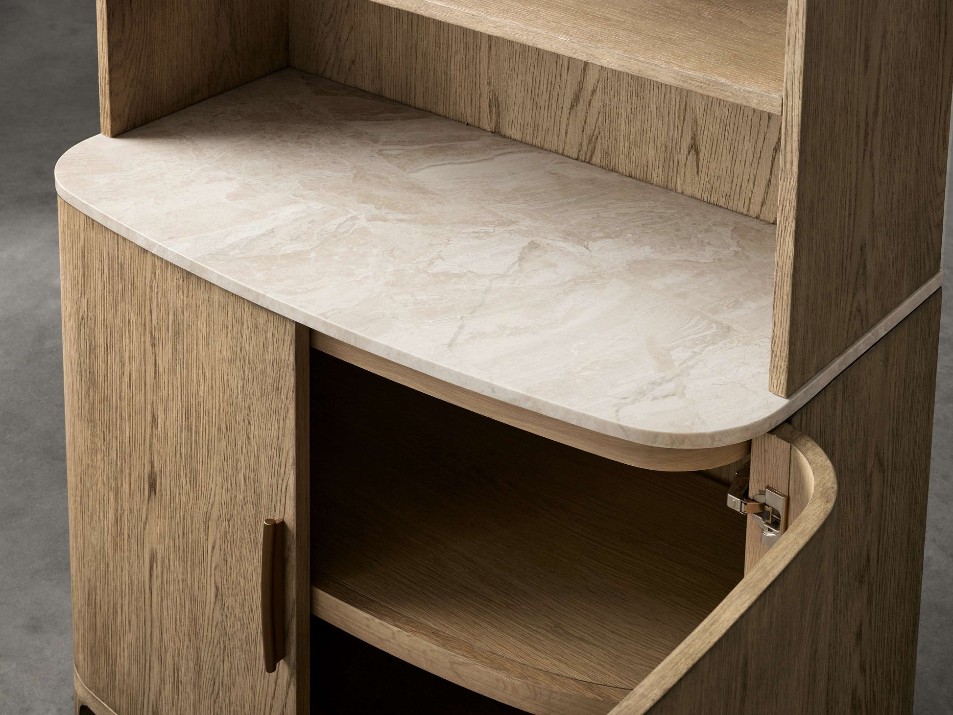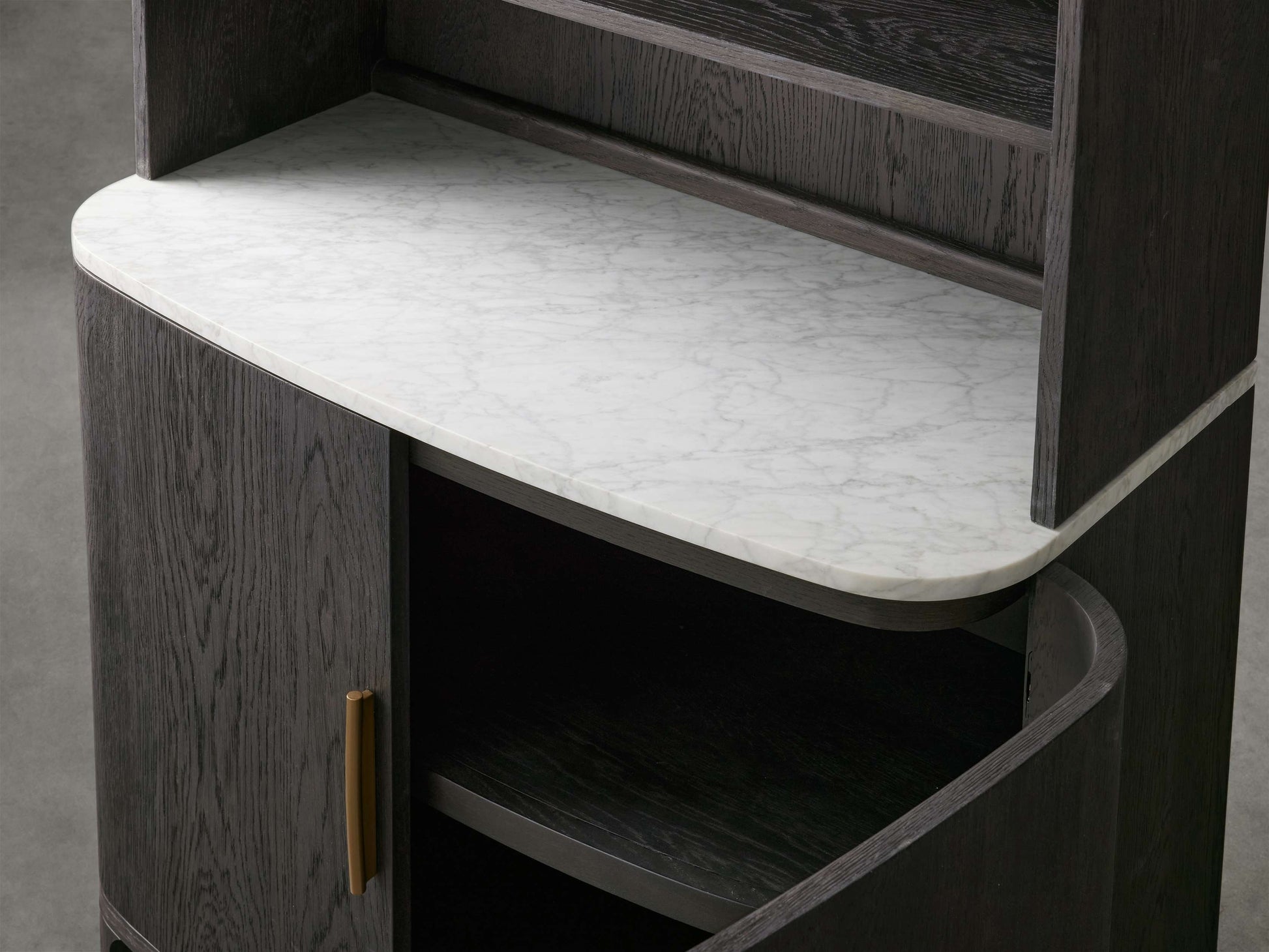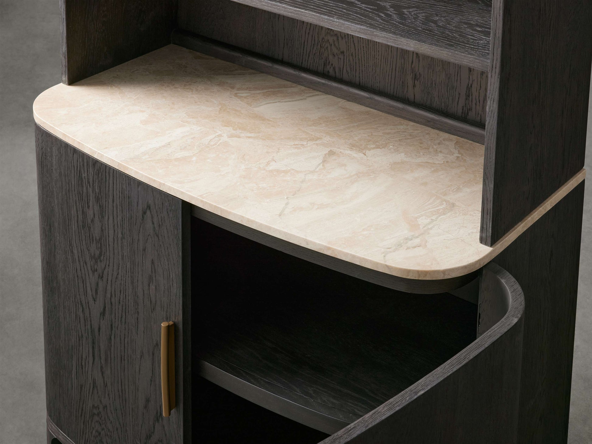 - Features white Carrara marble or earth-toned royal cream marble on the cabinet base and is coated with a clear lacquer to accentuate the stone’s natural features.