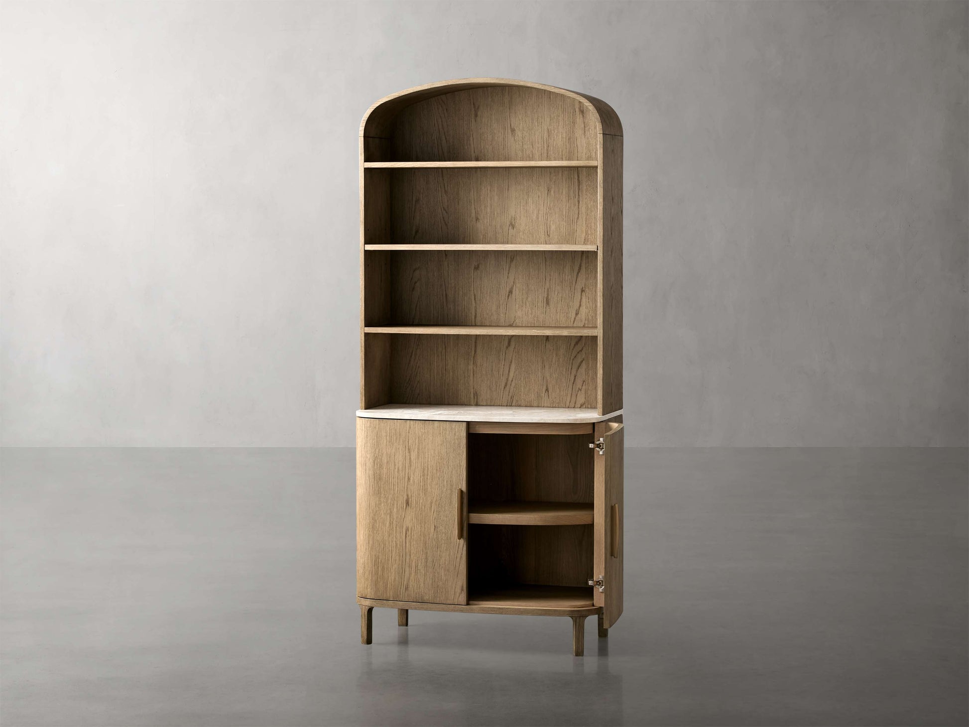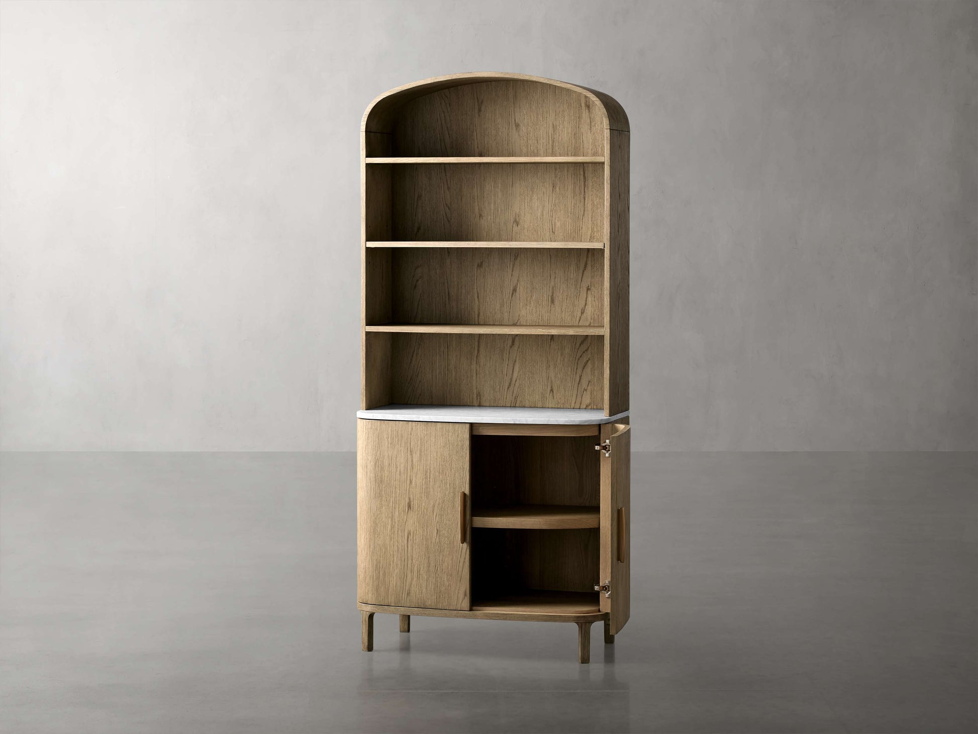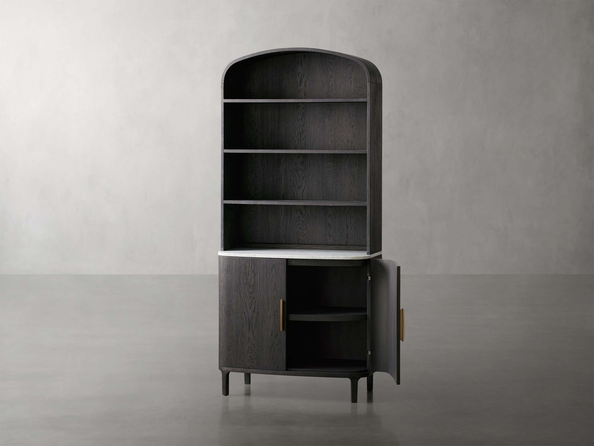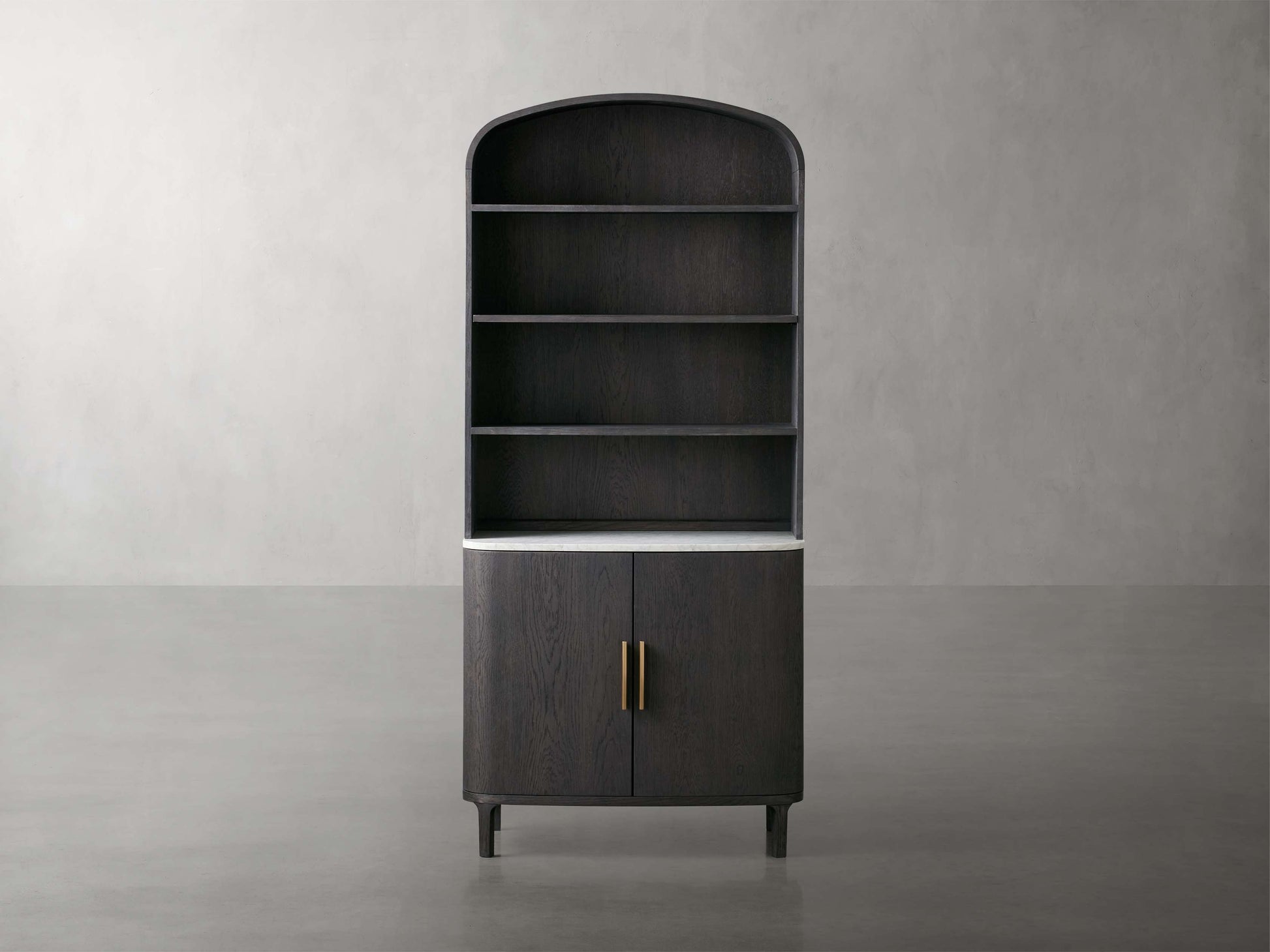 - Features white Carrara marble or earth-toned royal cream marble on the cabinet base and is coated with a clear lacquer to accentuate the stone’s natural features.