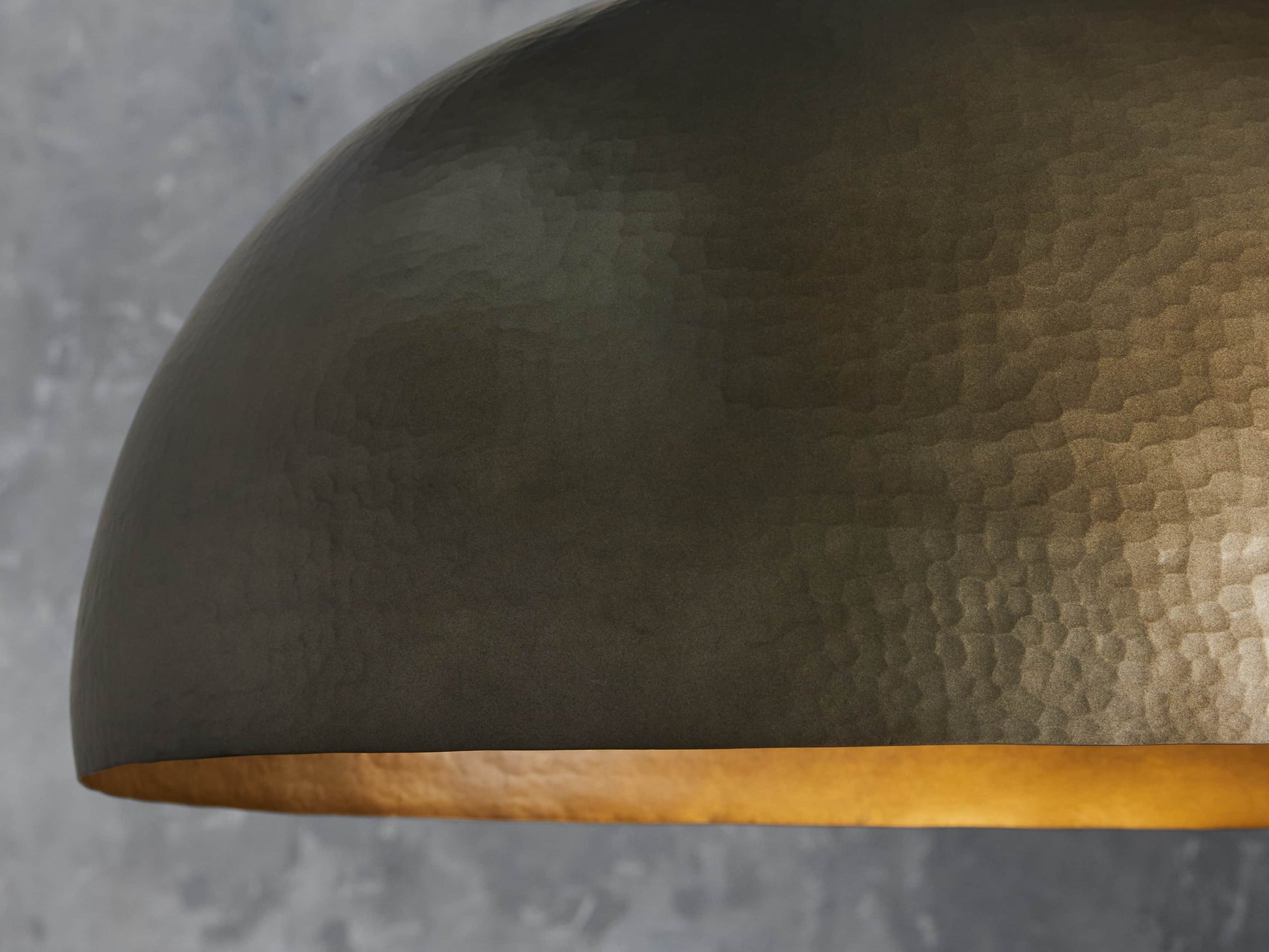 - Brass-finished pendant is crafted from recycled aluminum. Copper-finished pendant is crafted from recycled copper.