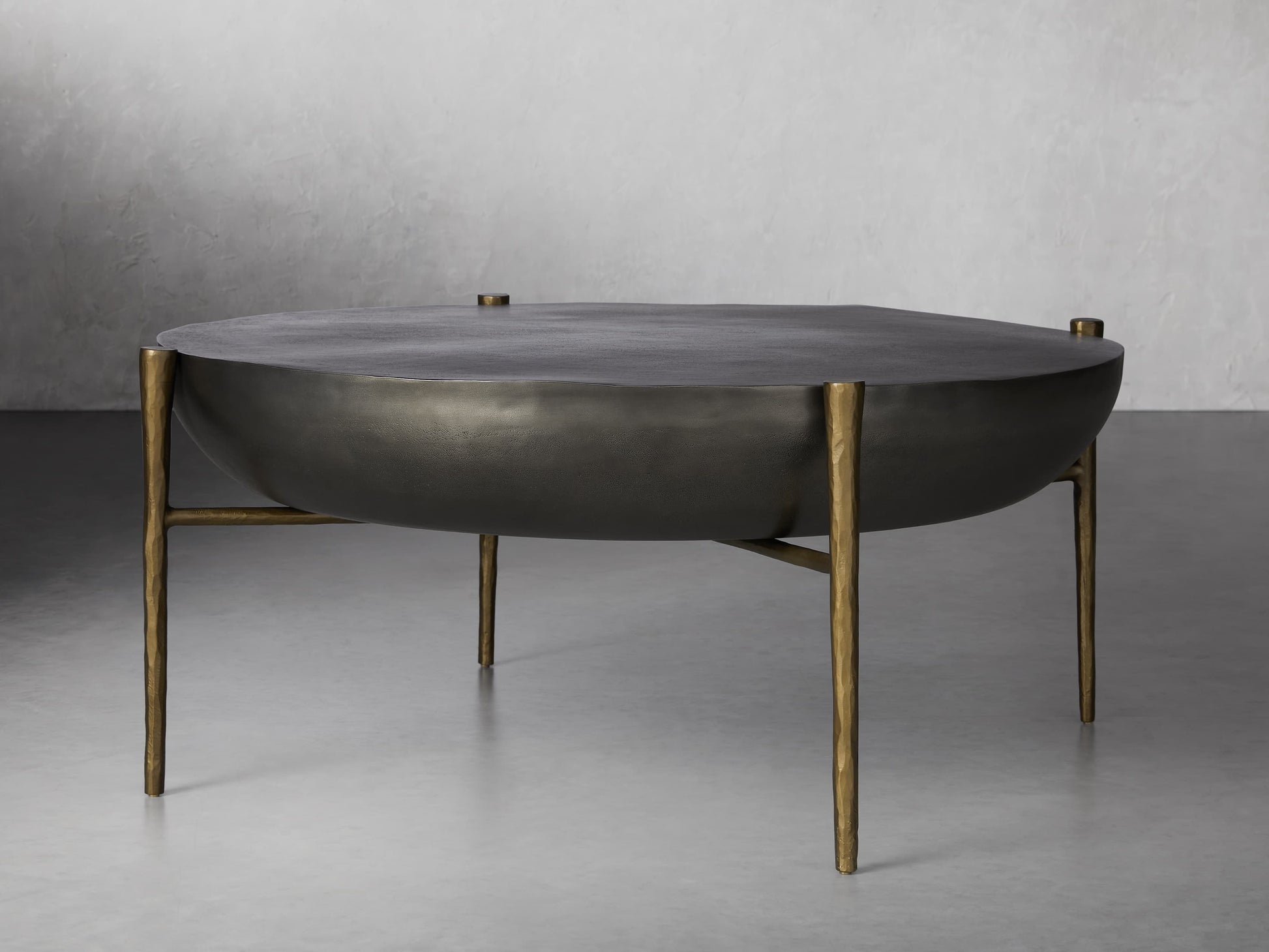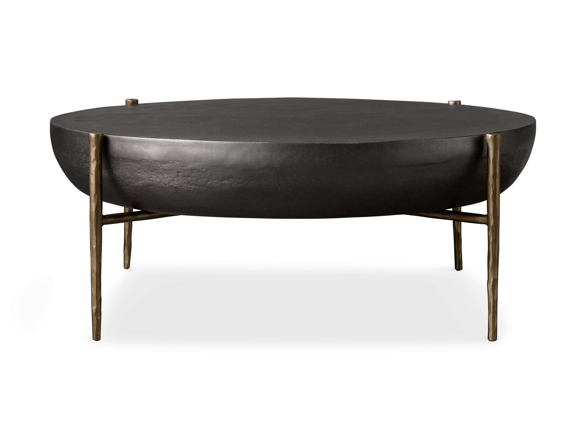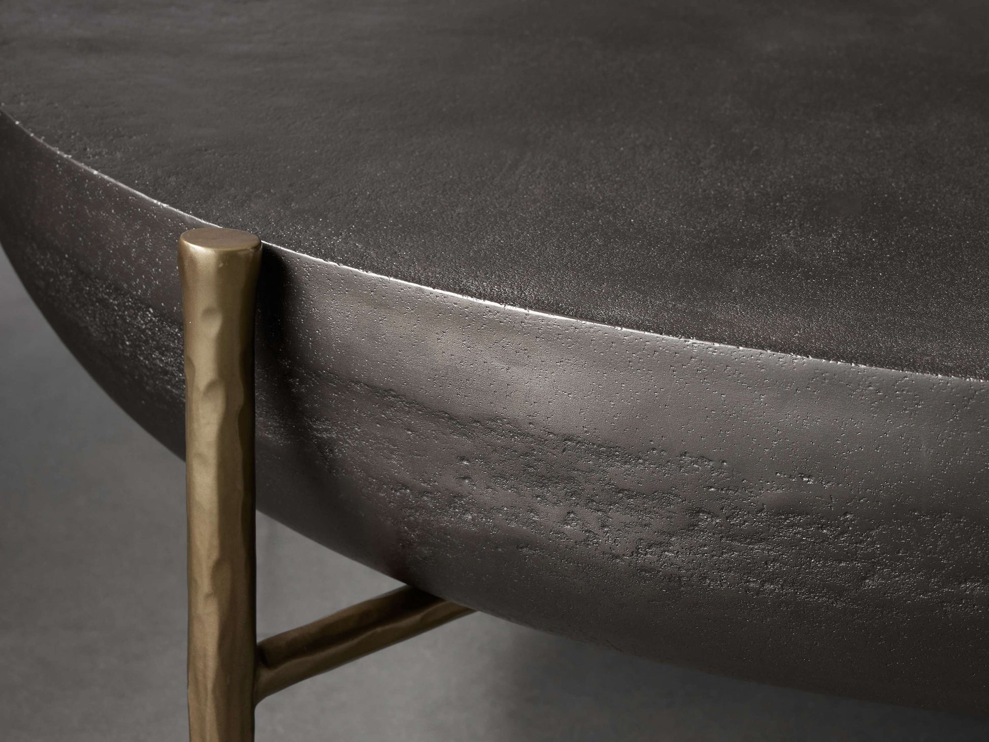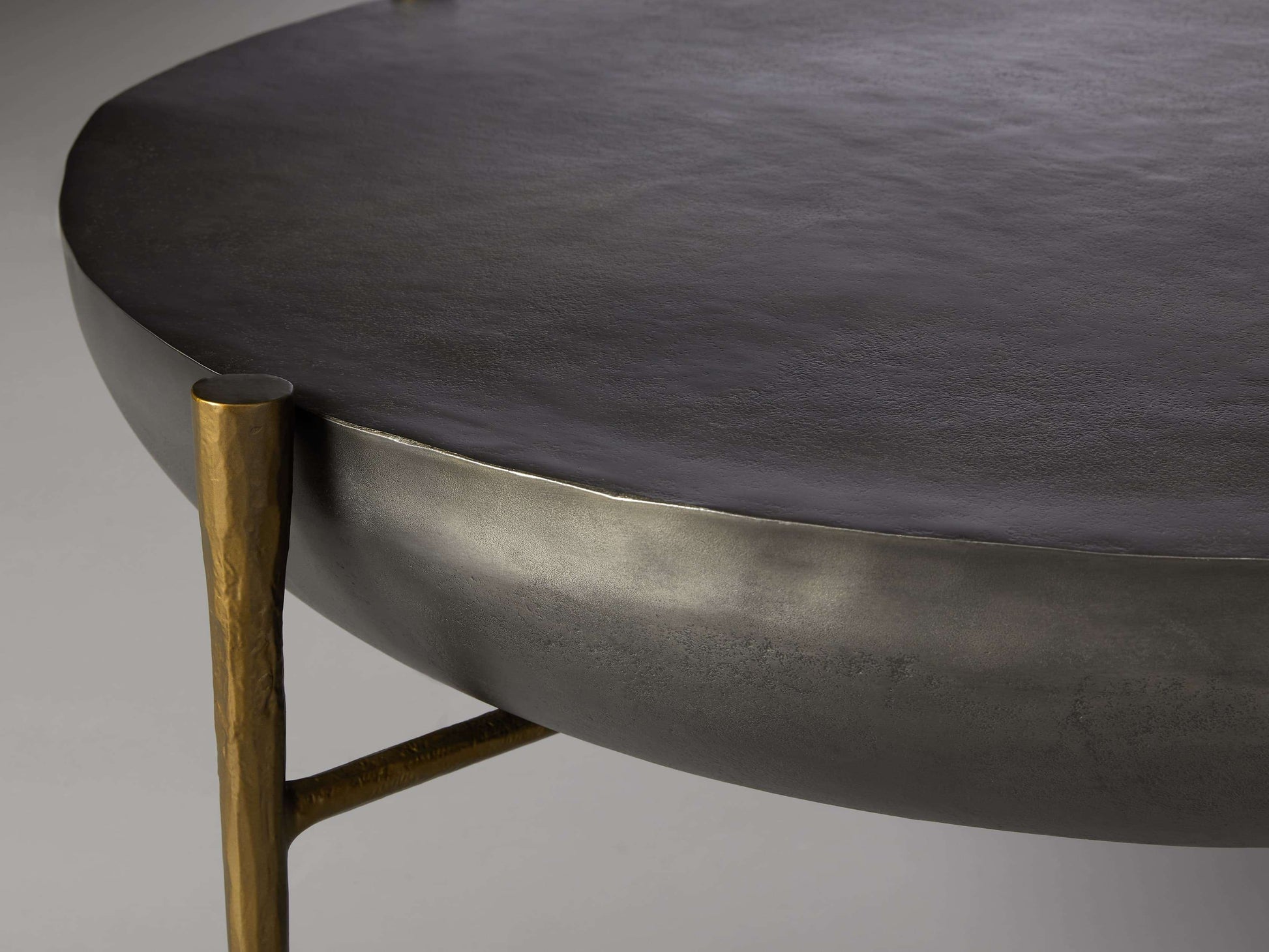 - Table surfaces are crafted from cast aluminum, featuring a textured finish available in black nickel, antique copper, or antique brass.