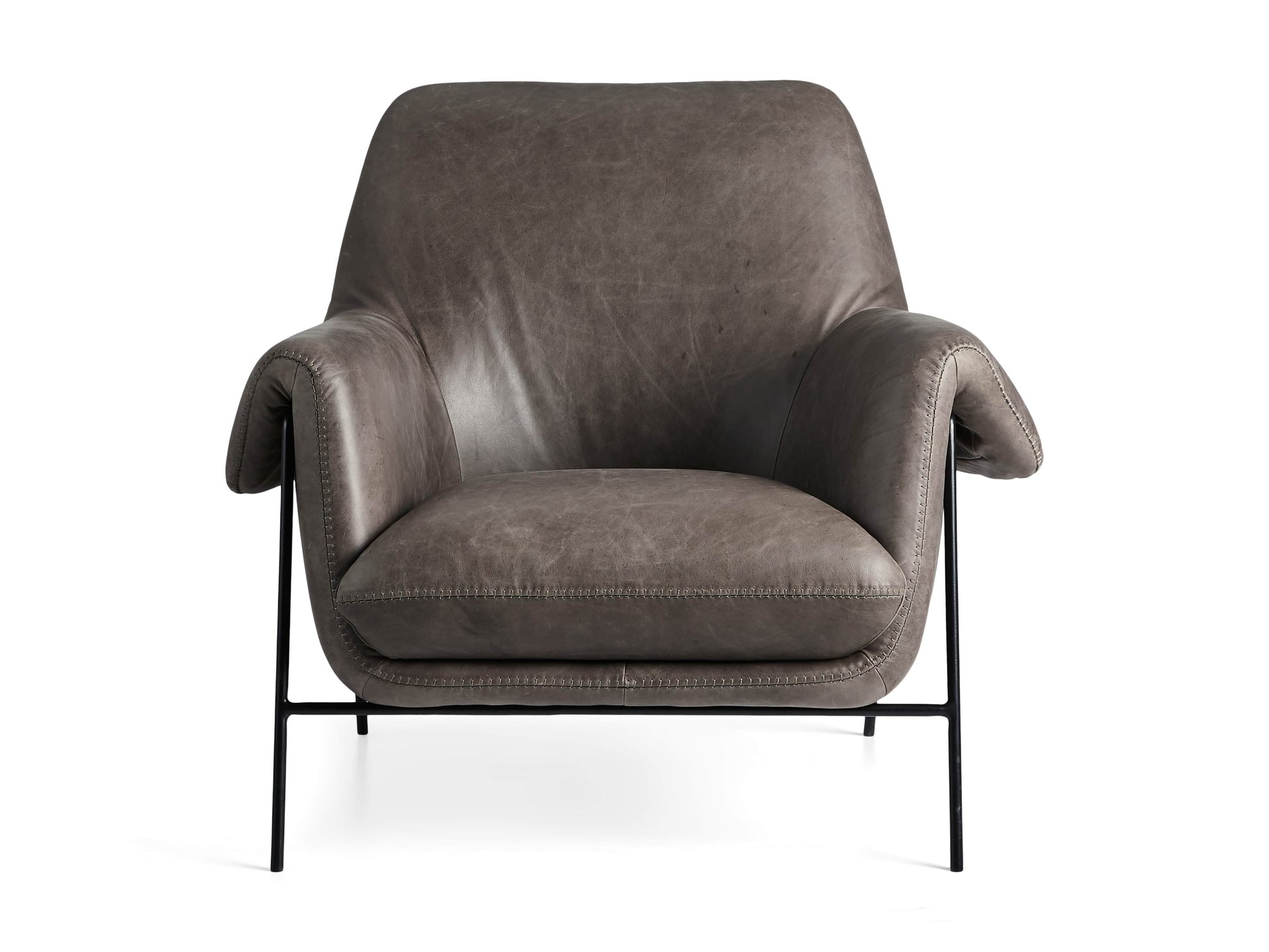 Plush, luxurious leather covering our Engles lounge chair evokes a contemporary, rustic aesthetic. Very generous upholstery resting on a subtle, black, solid steel frame showcases the leather’s rich artisan finish, golden brown saddle coloring, subtle texture, and unique natural features—which coalesce to add warmth and decadent comfort to any living space.