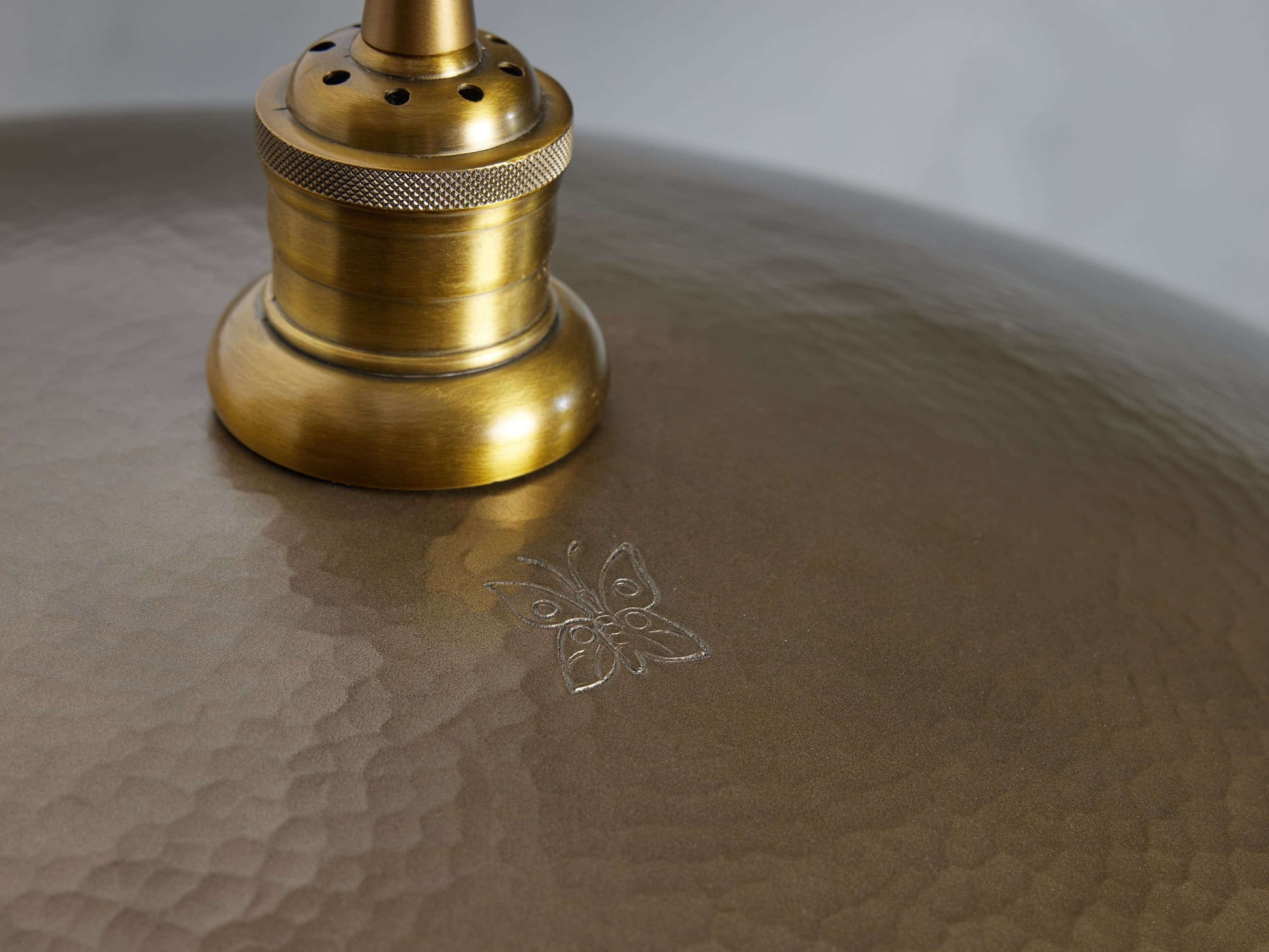 - Brass-finished pendant is crafted from recycled aluminum. Copper-finished pendant is crafted from recycled copper.
