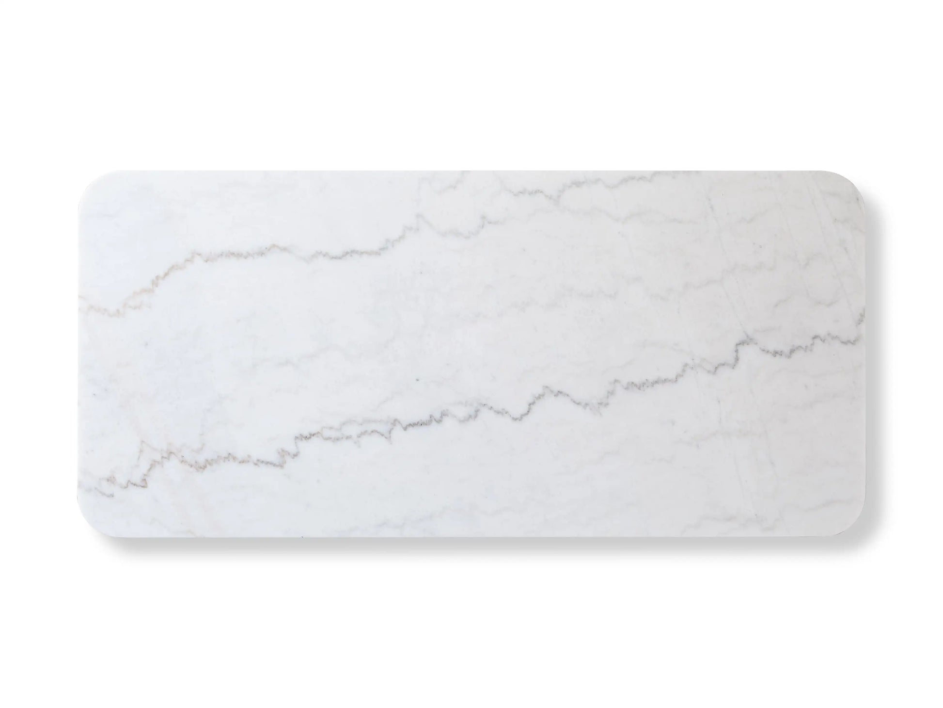 - Craftsman-built pieces feature reinforced mortise-and-tenon joinery for added strength and stability and are complemented by white marble or bluestone tops.