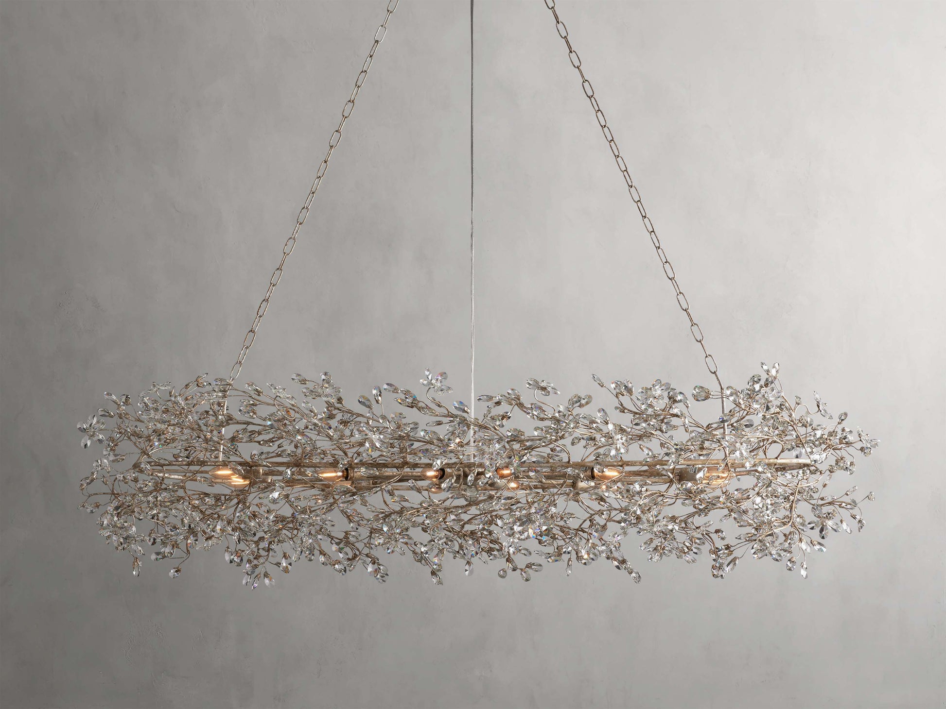 - 62" chandelier uses eight 40-watt max E12 bulbs and the 74" chandelier uses 12 40-watt max E12 bulbs (not included). We recommend our LED Candelabra E12 bulbs (6610071B134).
