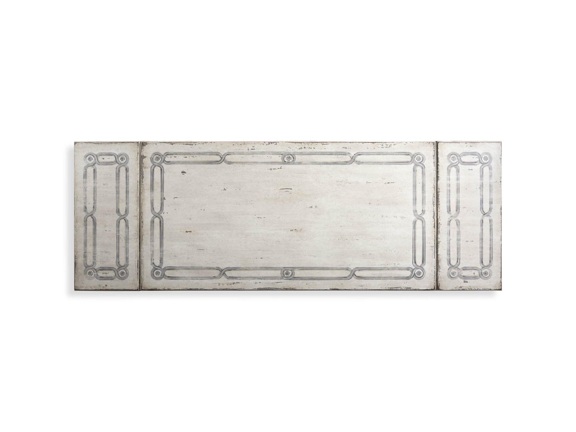 - The top and bottom is beautifully hand-finished in Antique White. The detailed geometric border is hand-painted in Antique Grey for an elegant, timeless aesthetic.