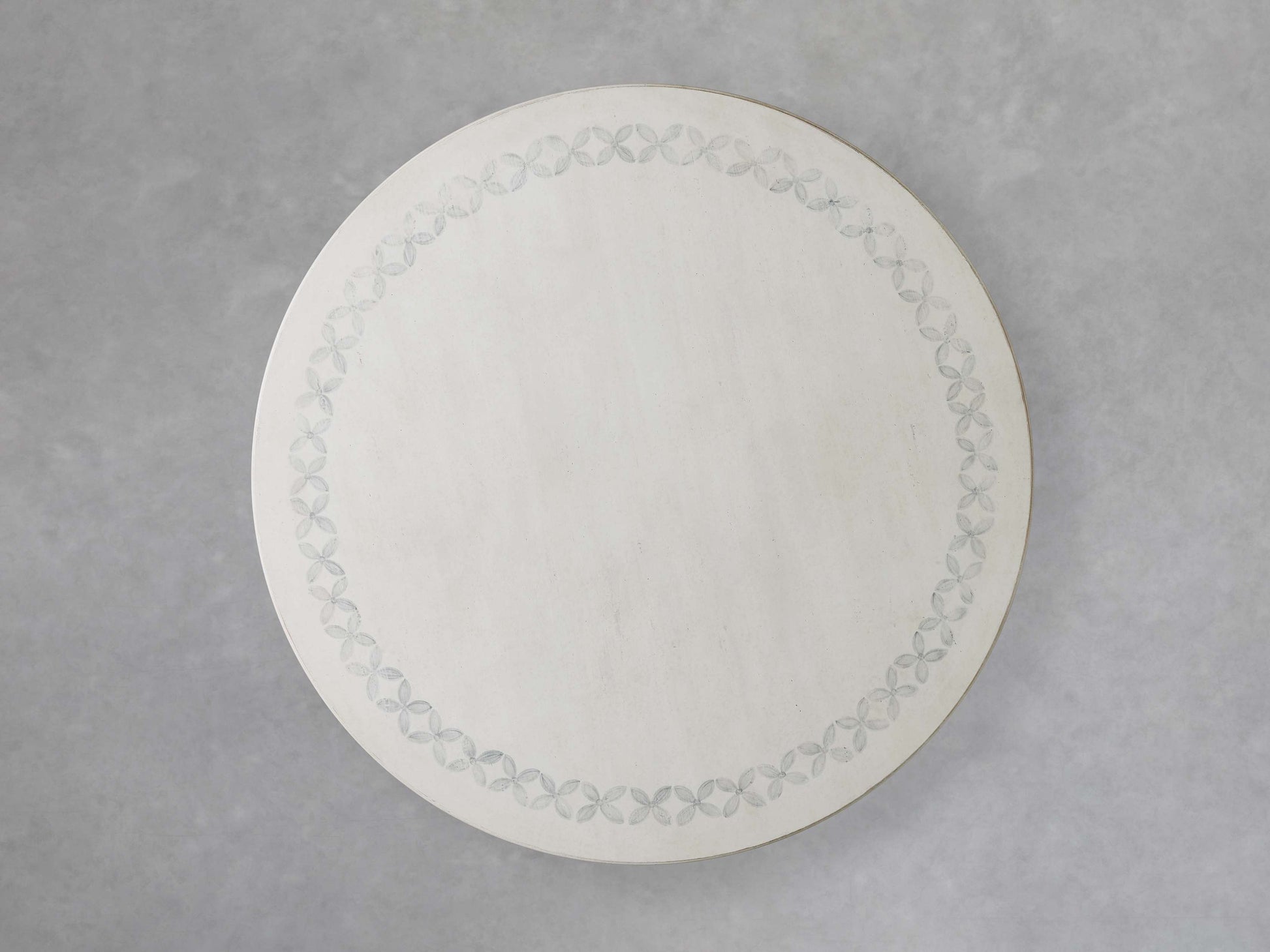 - The top and bottom is beautifully hand-finished in Antique White. The detailed pattern along the border is hand-painted in a complementing finish for an elegant, timeless aesthetic.