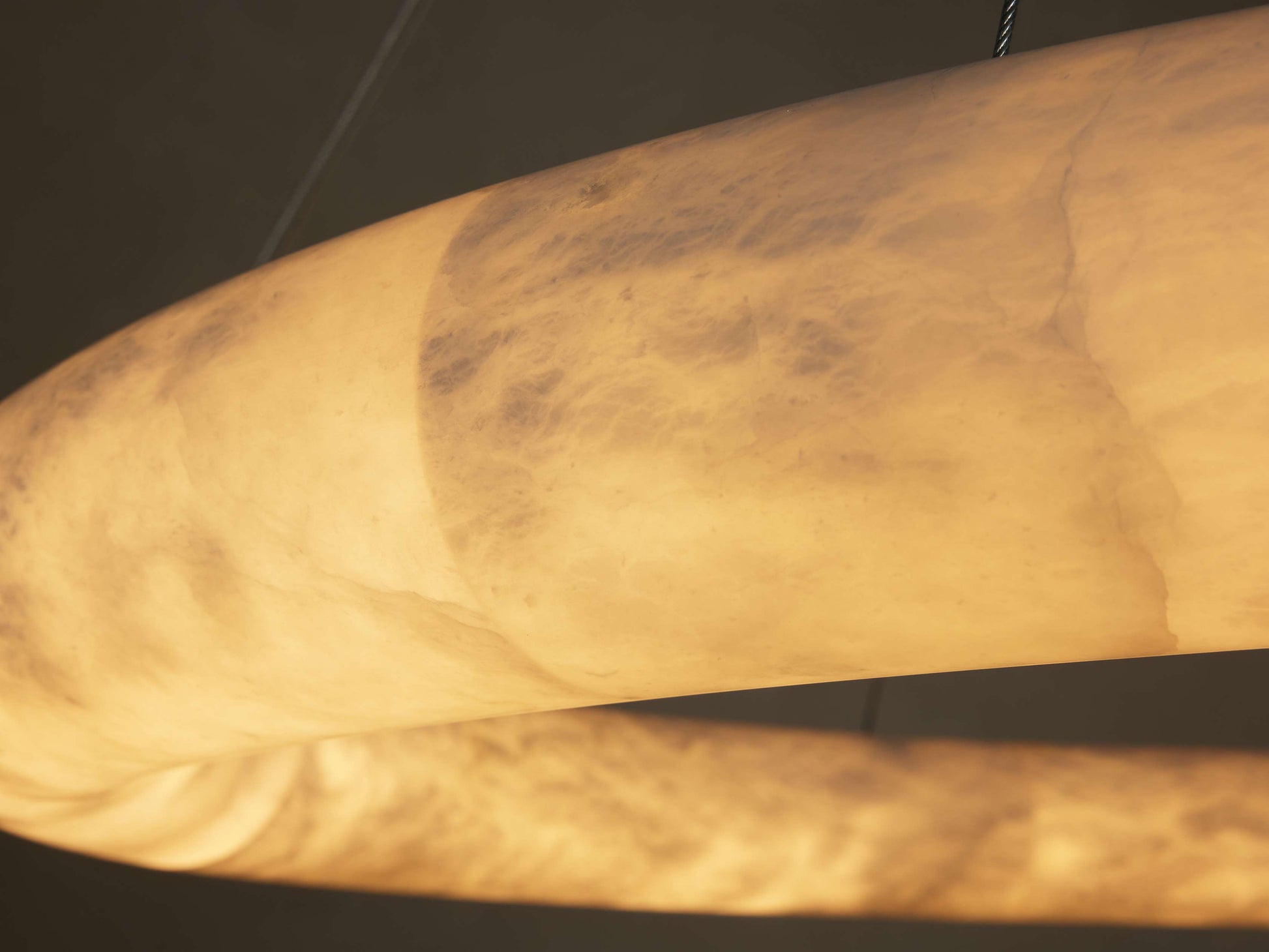 Crafted from ethereal Spanish alabaster, our Halima Lighting Collection glows from within―its integrated LED lights casting a warm, diffused radiance through the stone’s natural veining. Suspended by minimalist cables, Halima’s sleek design floats effortlessly overhead, blending timeless materiality with modern style.