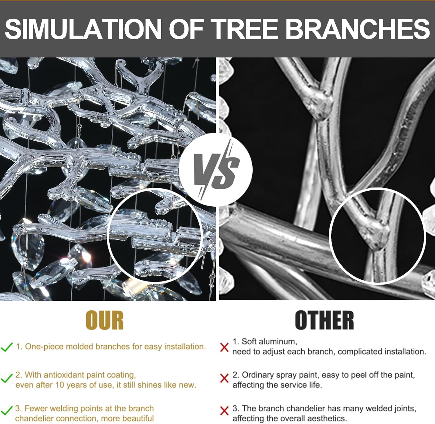 Ice Eye Modern Crystal Tree Branch Round Chandelier for All Rooms 30" 40" 48"