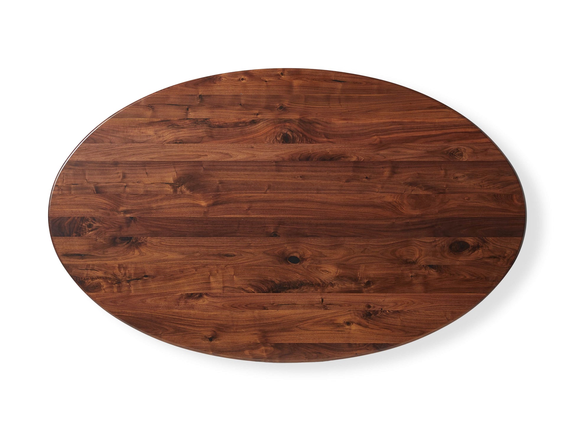 Our Jacob Dining Collection celebrates craftsmanship with sleek and modern style, bringing natural wood into contemporary dining spaces. Tabletops are made from solid oak and walnut, handcrafted by a community of Amish artisans. Oils, stains, and varnishes are applied to each tabletop by hand, creating high-gloss finishes that accentuate the wood’s natural beauty. Vertex Table Bases are made from iron in a subtle, flat black finish to complement the beautiful tones of the wood.