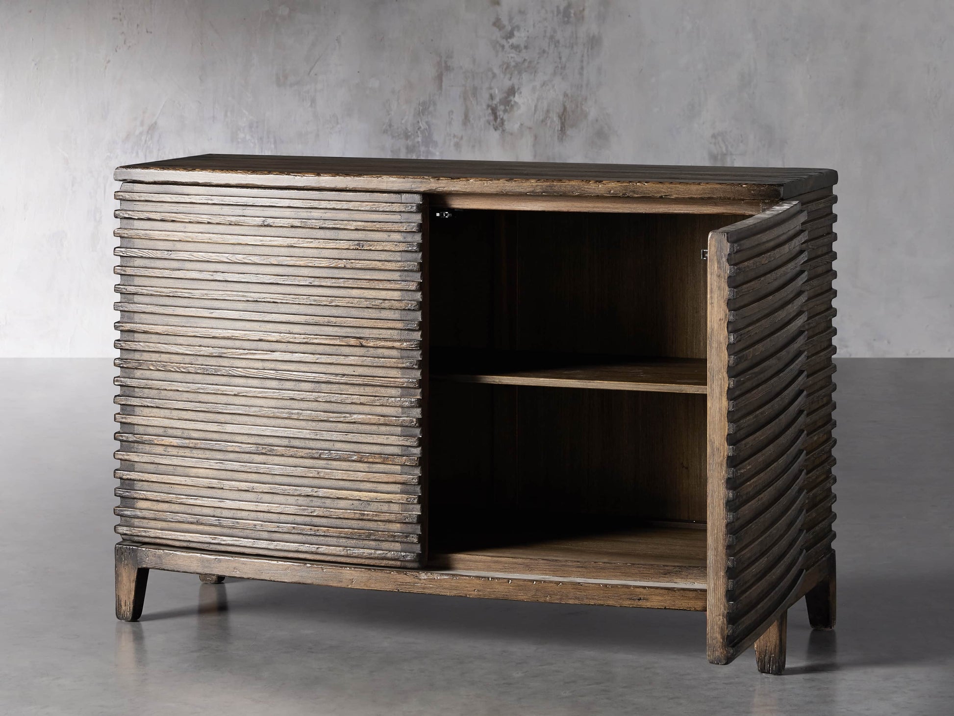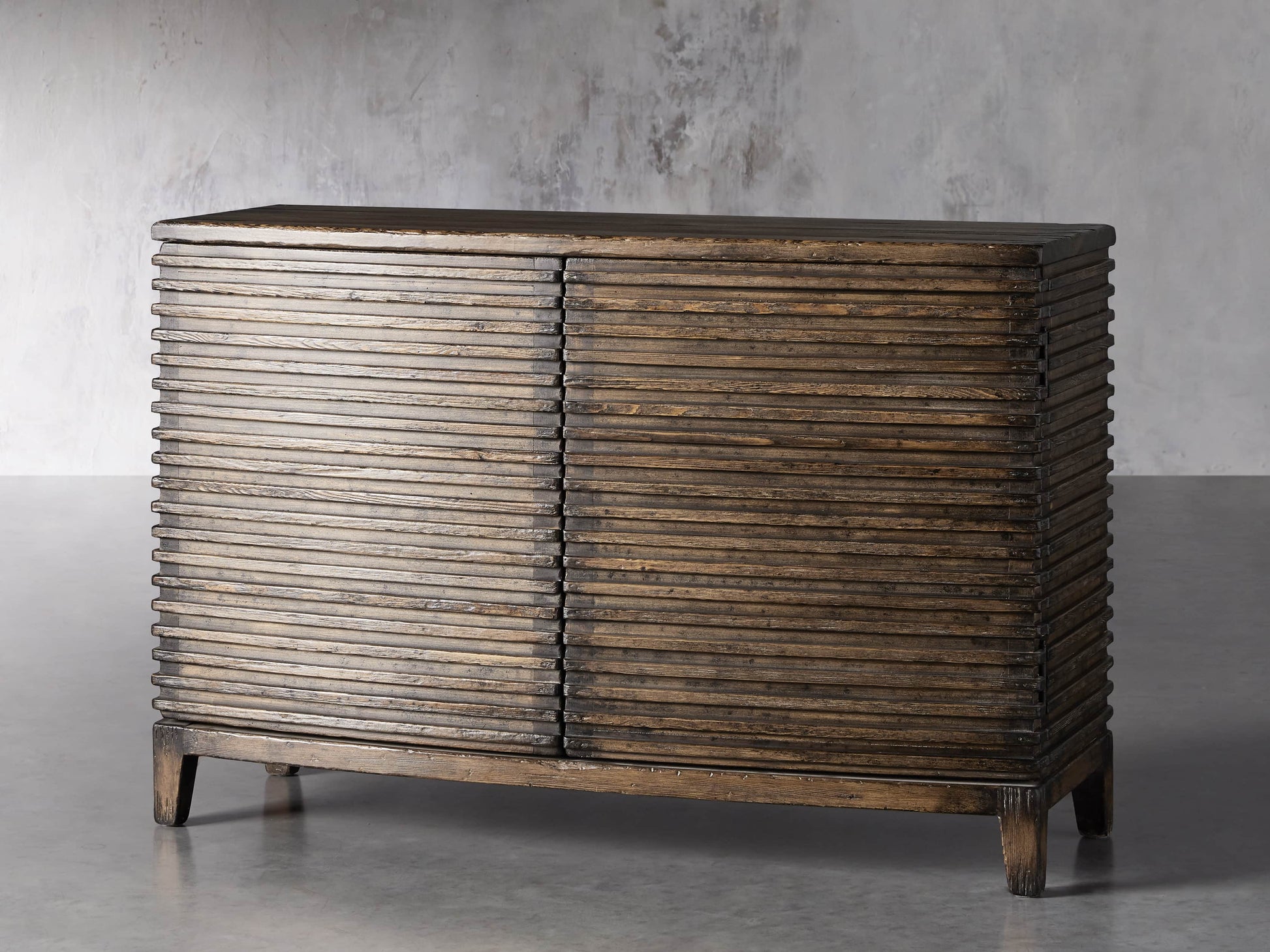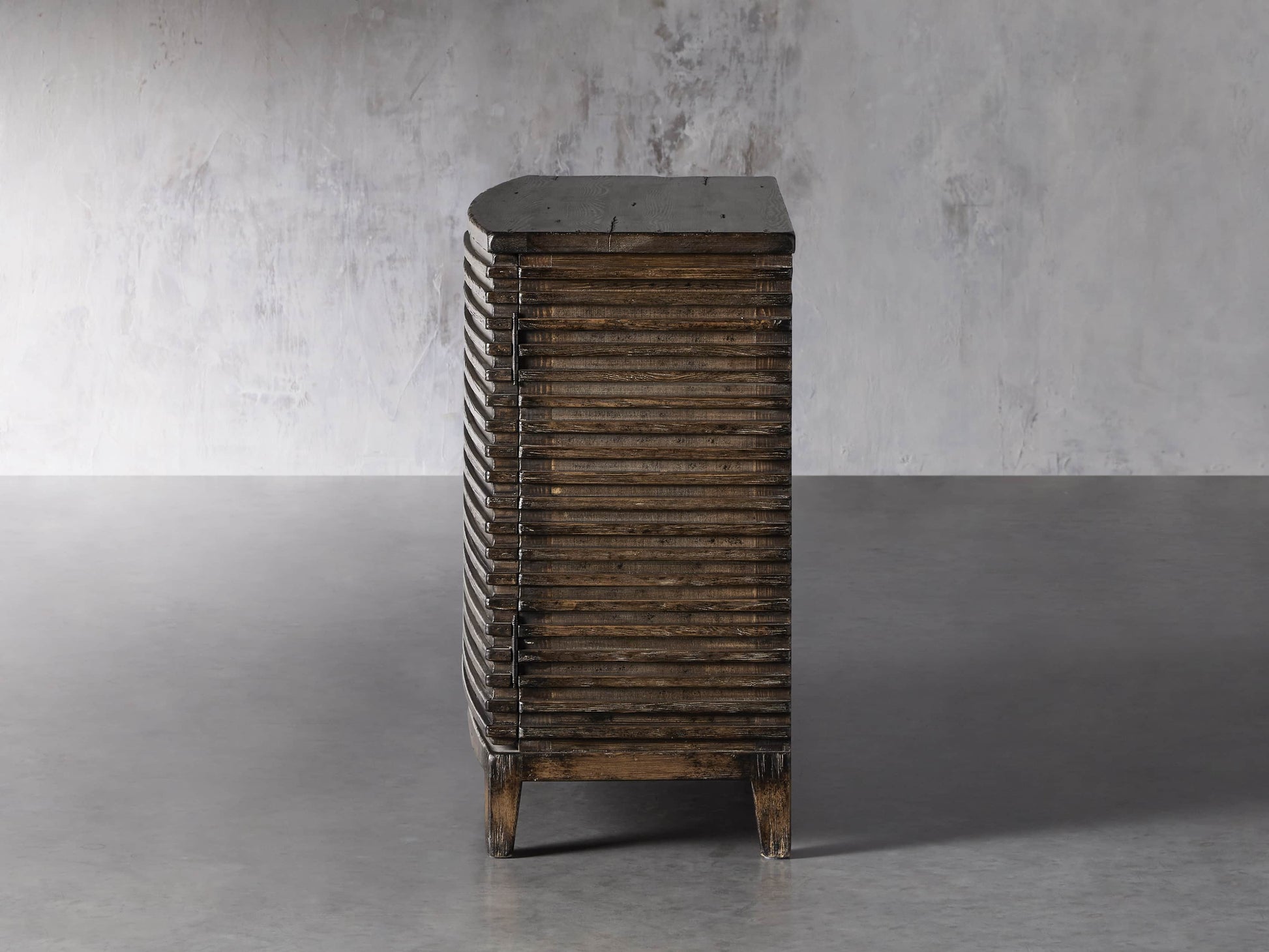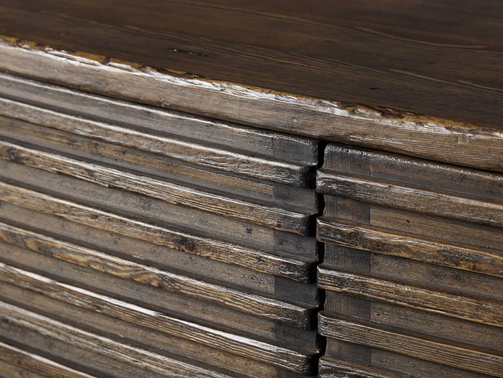 - Antiqued Dhurrie Brown finish is lacquered to protect the original character of each reclaimed wood surface.