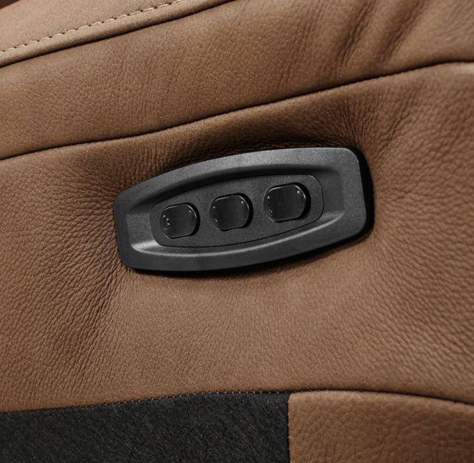 - Dual-motor continuous motion reclining mechanism enables customizable seating positions