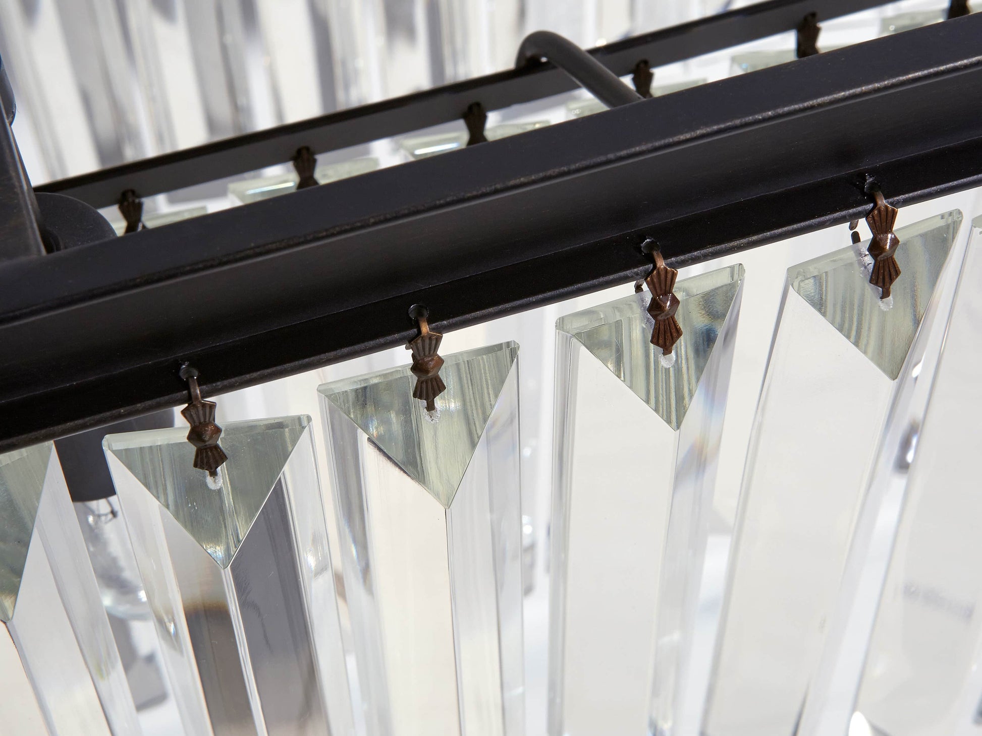 - Crafted from multifaceted K9 glass crystals with an iron frame and oil-rubbed finish.