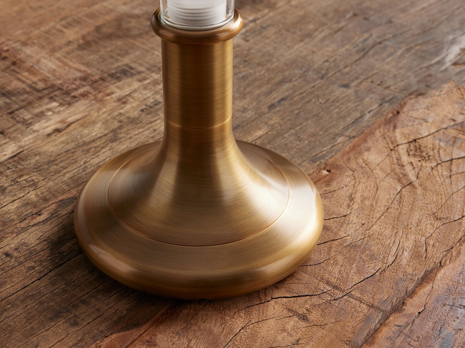 - Crafted from steel and glass with either a brushed bronze or burnished brass finish.