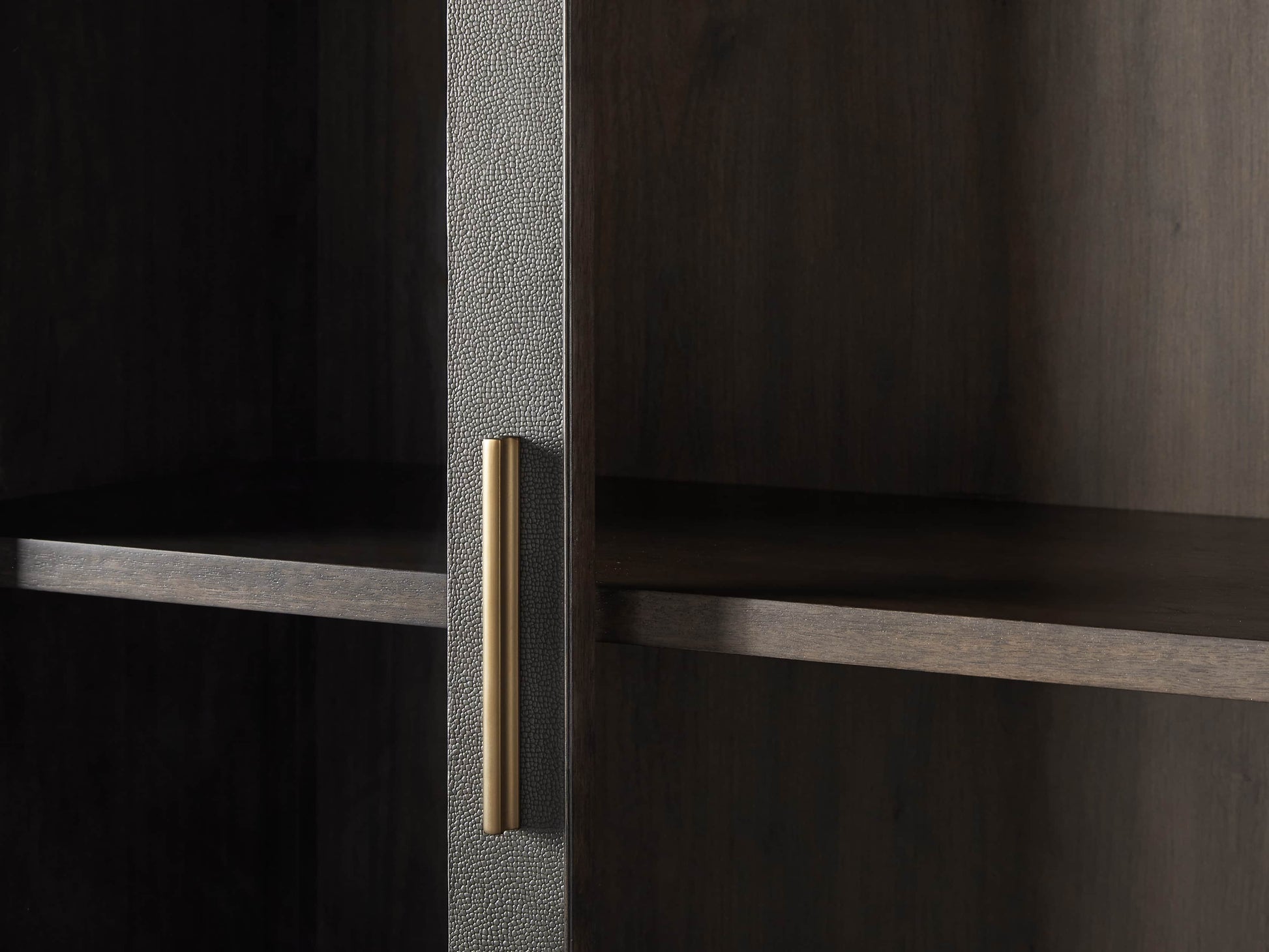 Featuring a sleek aesthetic, our Malone Collection is artisan-crafted from solid parawood or oak wood—depending on your preferred finish—and surfaced with walnut or elm wood veneers. Insets made from reconstituted leather embossed with a shagreen pattern are complemented by hand-applied finishes to give this collection a modern look with intriguing textural details. Elegant silhouettes and metallic accents will elevate your space to a new level of refinement.