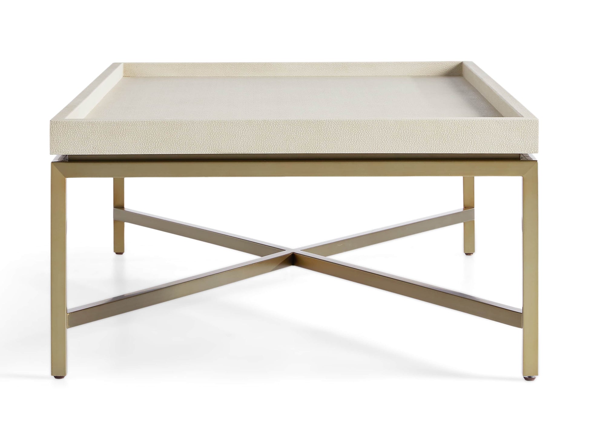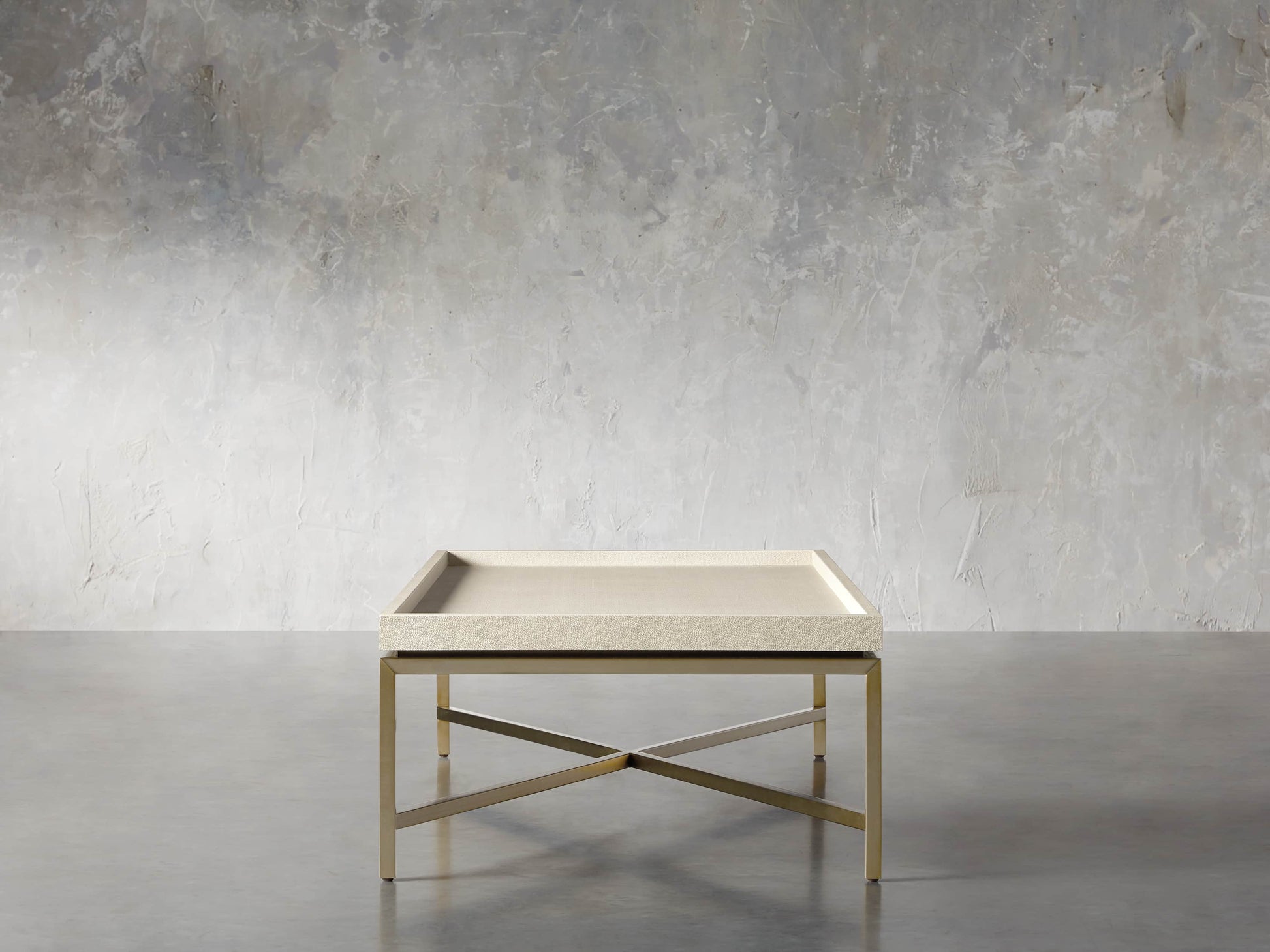 Featuring a modern, tailored aesthetic with intriguing textural details, our Malone occasional tables are topped with reconstituted leather embossed with a shagreen pattern. Supported by complementing steel bases, Malone's chic, minimalist silhouette will elevate your space to a new level of refinement.