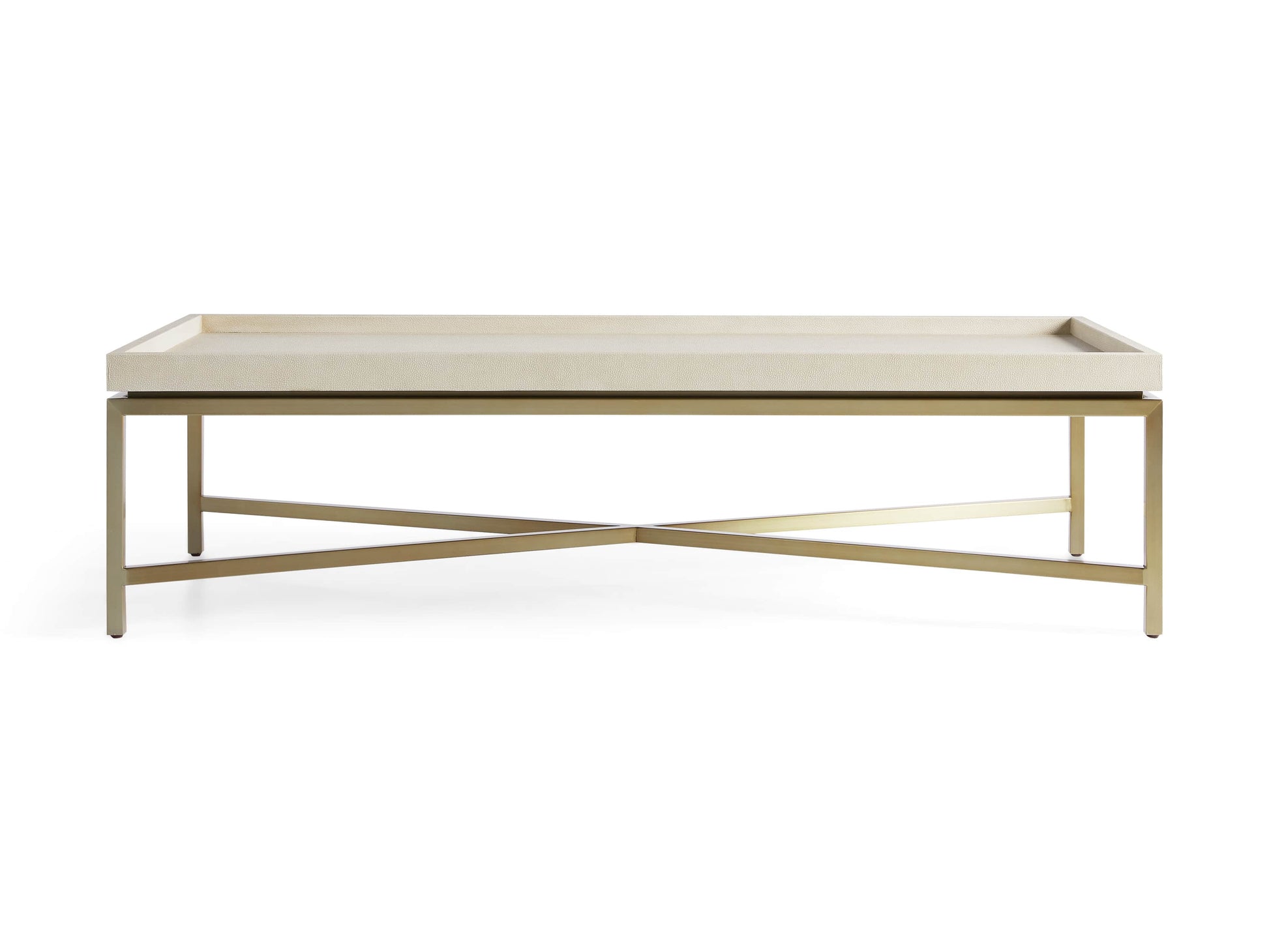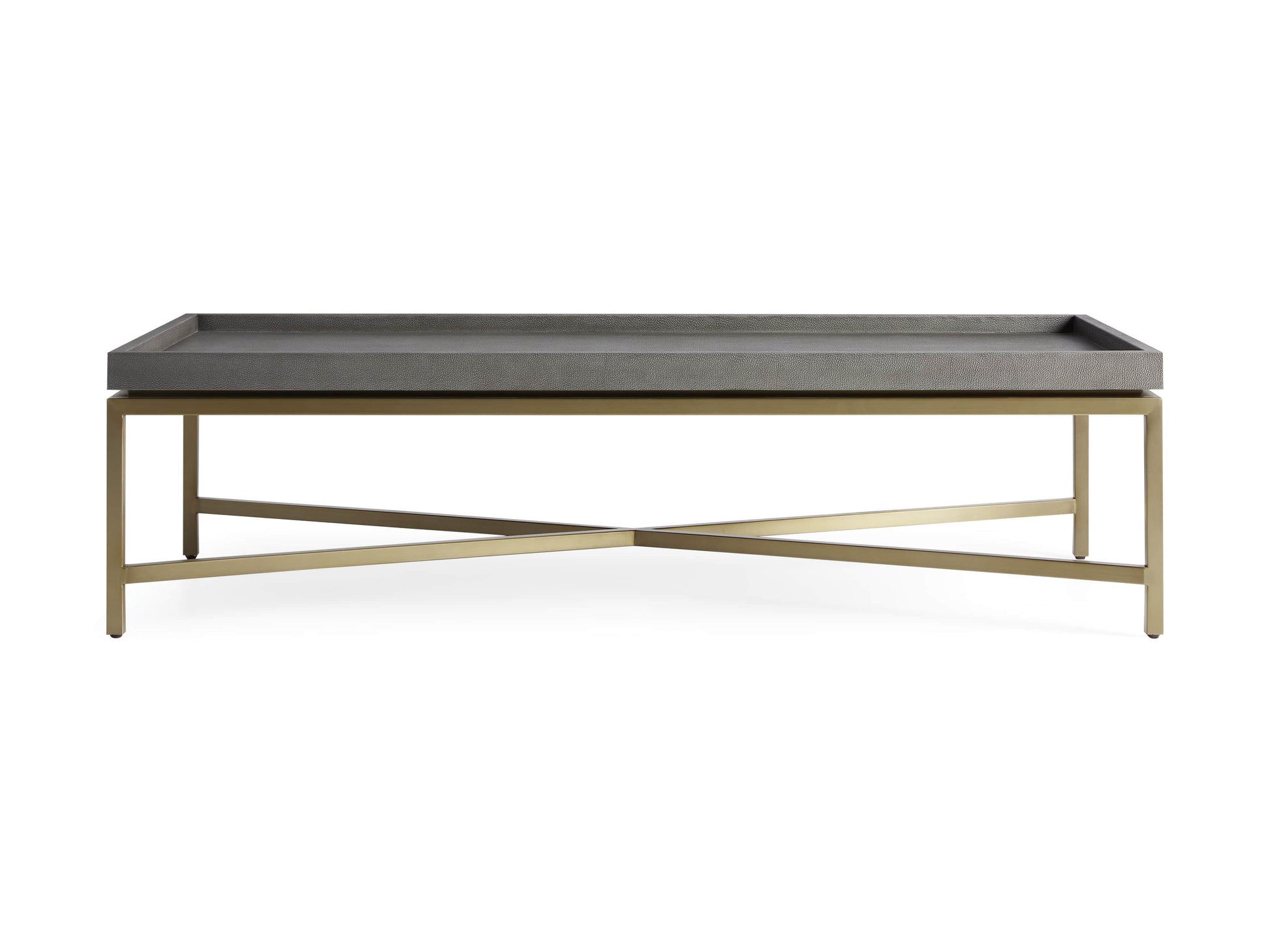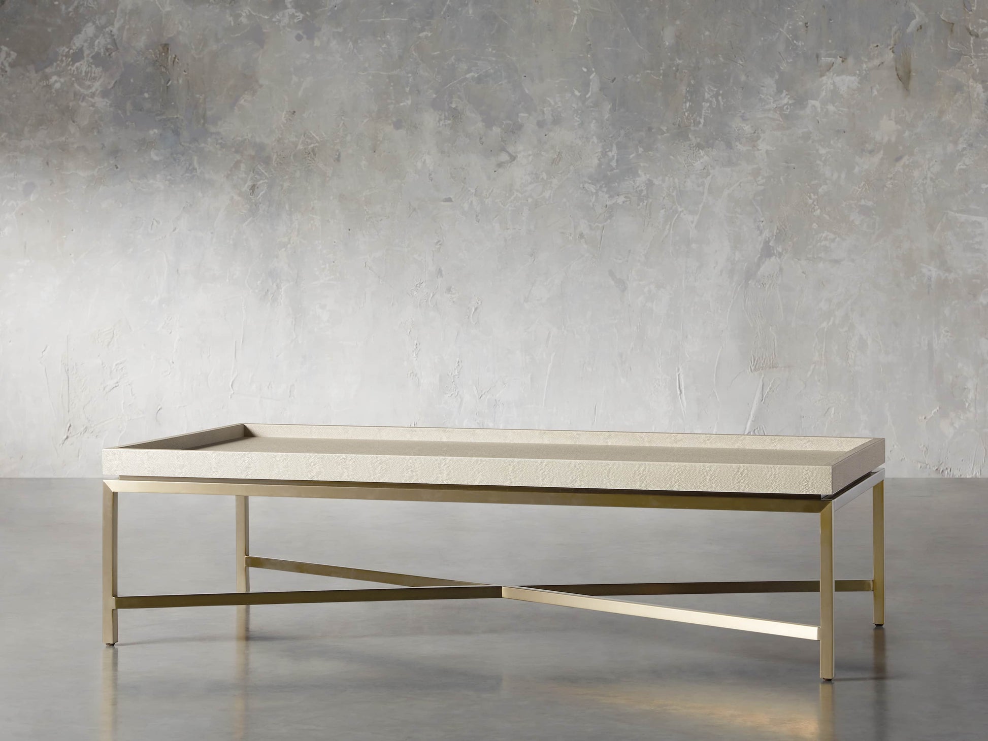 - Tabletops are crafted from engineered hardwood surfaced with reconstituted leather that has been dyed and artfully embossed with a shagreen pattern.