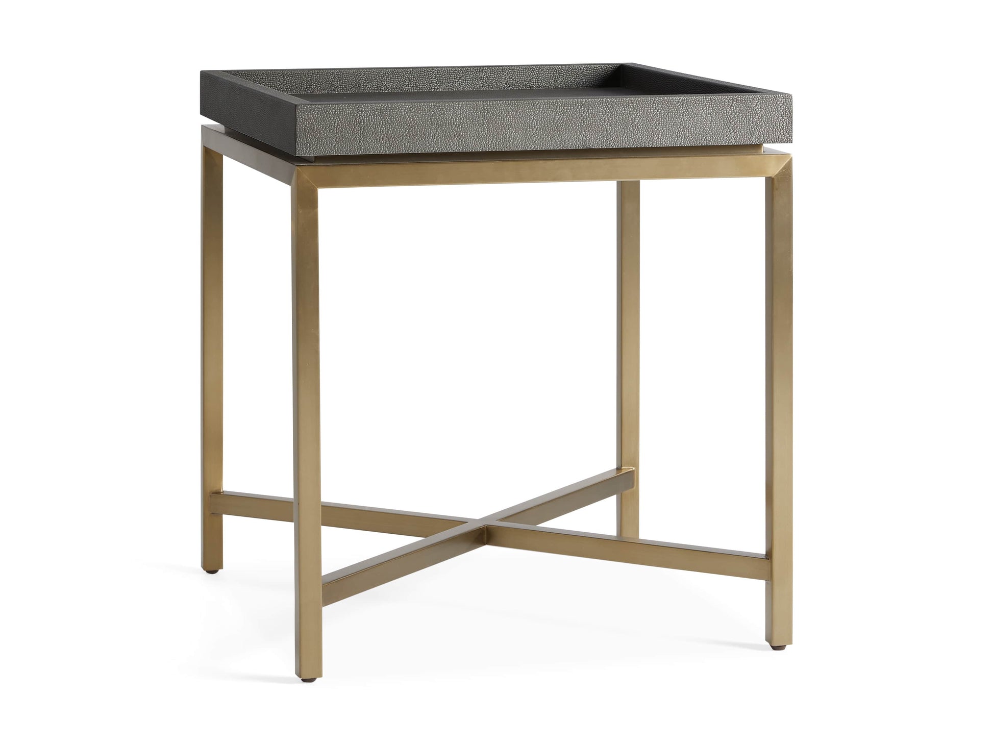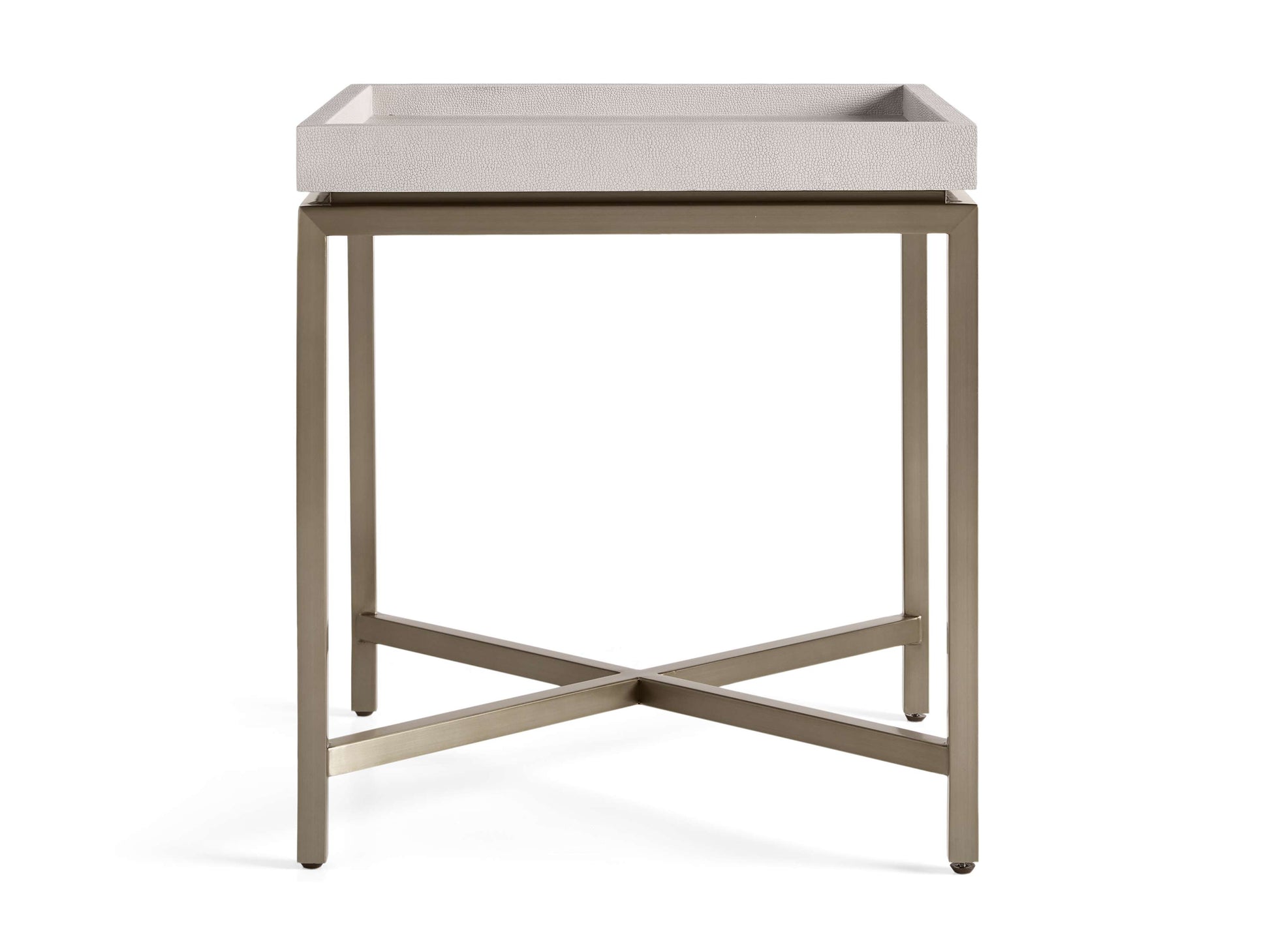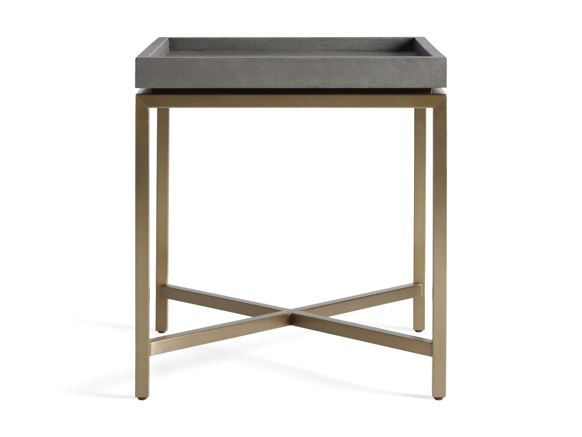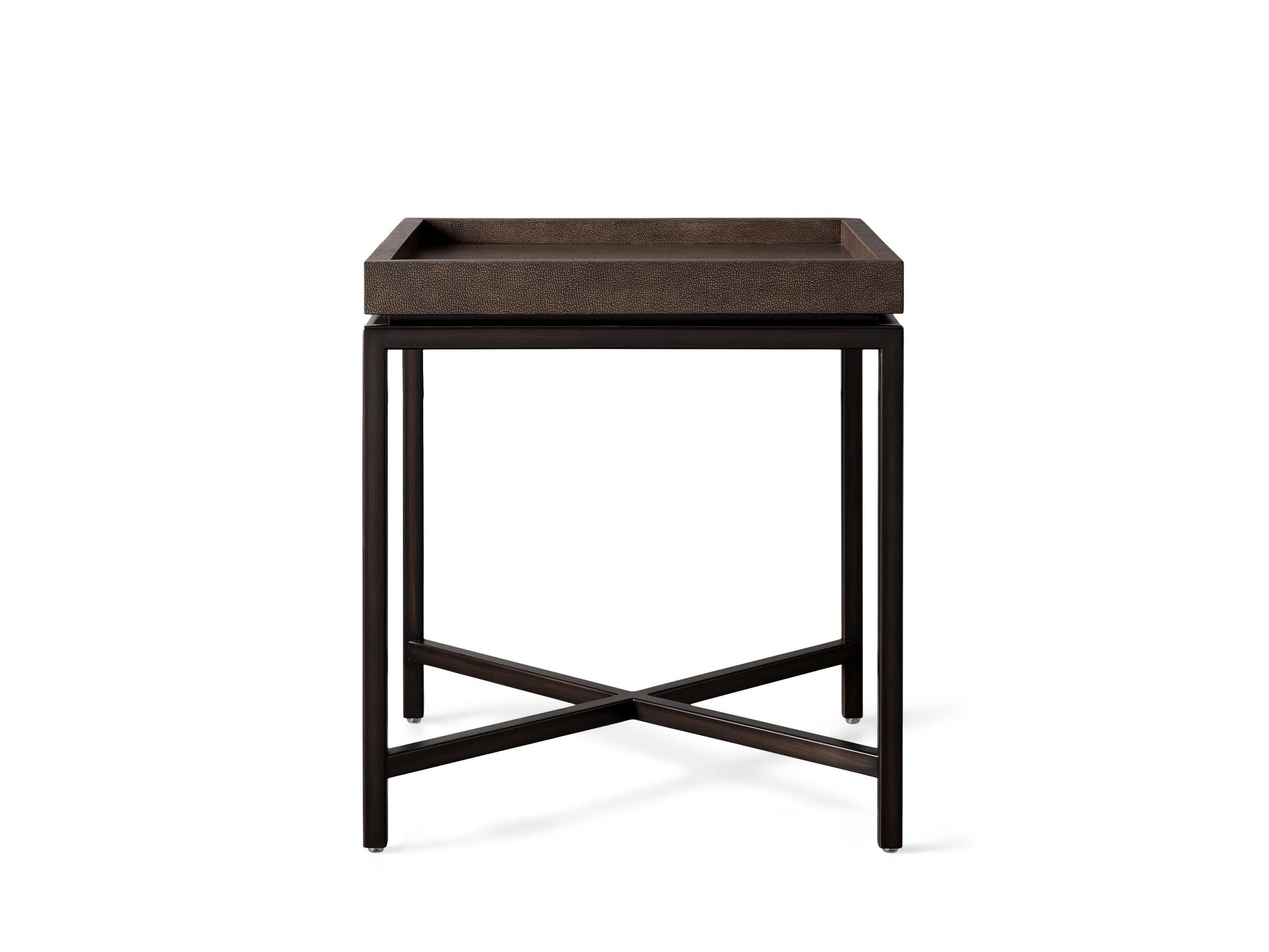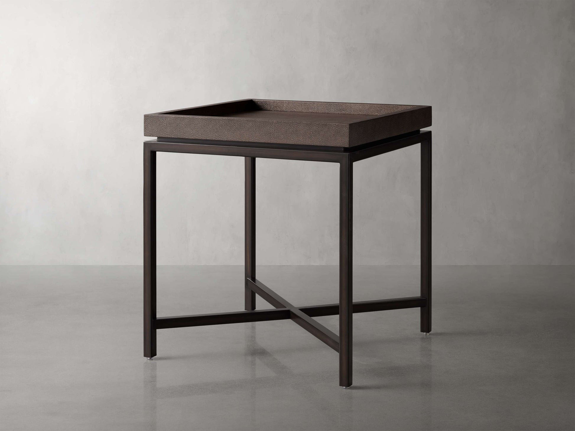 Featuring a modern, tailored aesthetic with intriguing textural details, our Malone occasional tables are topped with reconstituted leather embossed with a shagreen pattern. Supported by complementing steel bases, Malone's chic, minimalist silhouette will elevate your space to a new level of refinement.