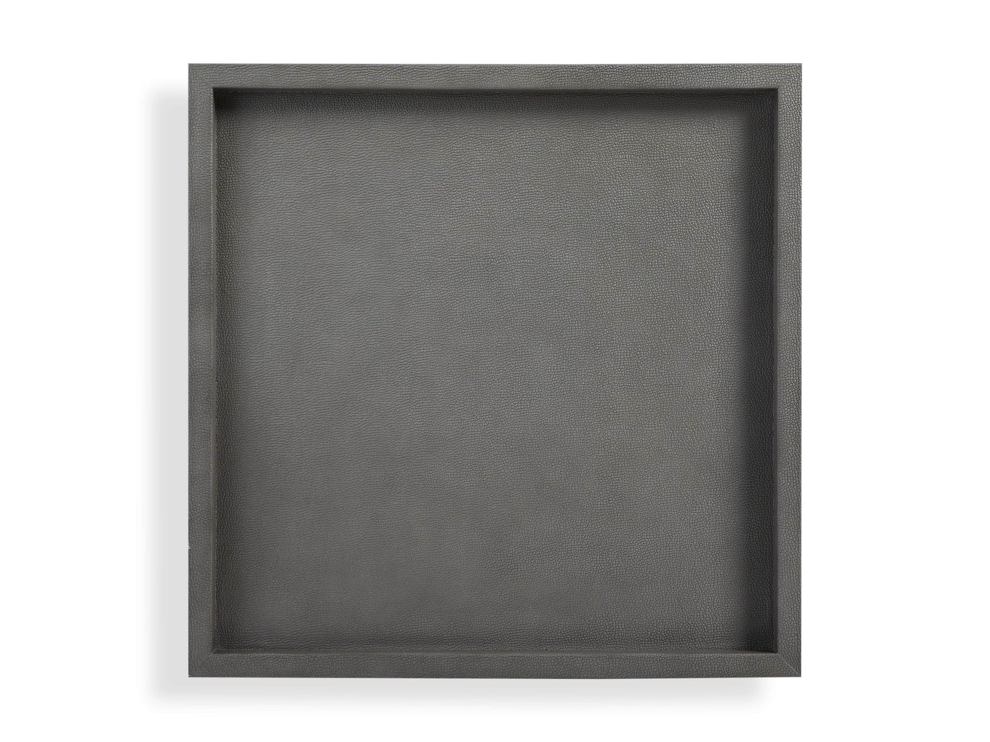 - Tabletops are crafted from engineered hardwood surfaced with reconstituted leather that has been dyed and artfully embossed with a shagreen pattern.