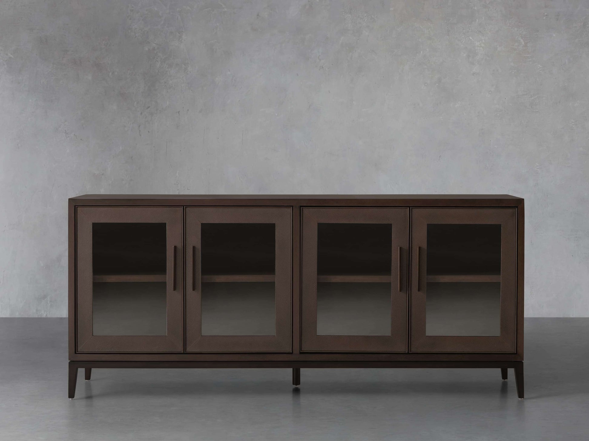 - Reconstituted leather insets are dyed and artfully embossed with textural shagreen detailing.