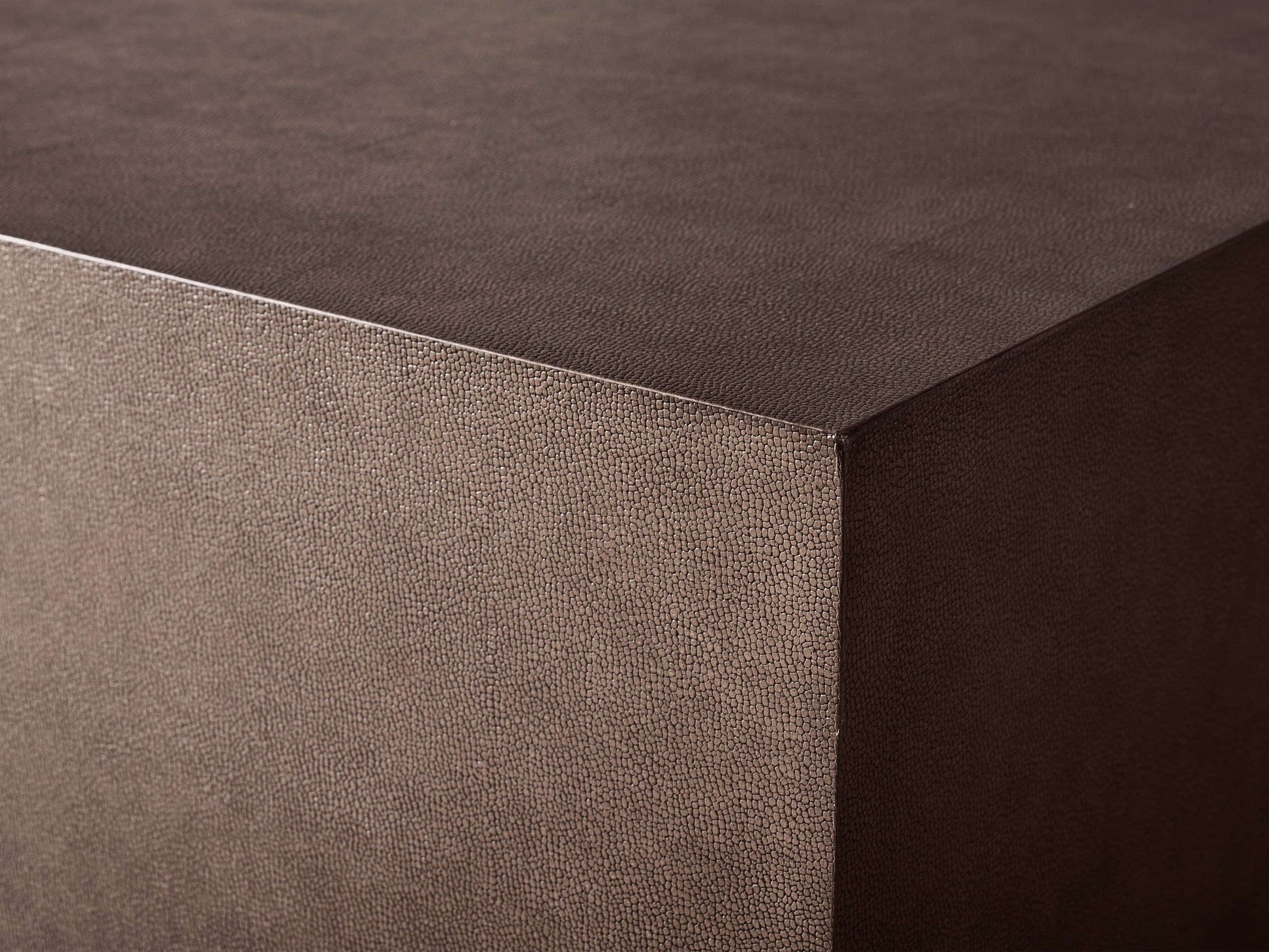 - Tabletops are crafted from engineered hardwood surfaced with reconstituted leather that has been dyed and artfully embossed with a shagreen pattern.