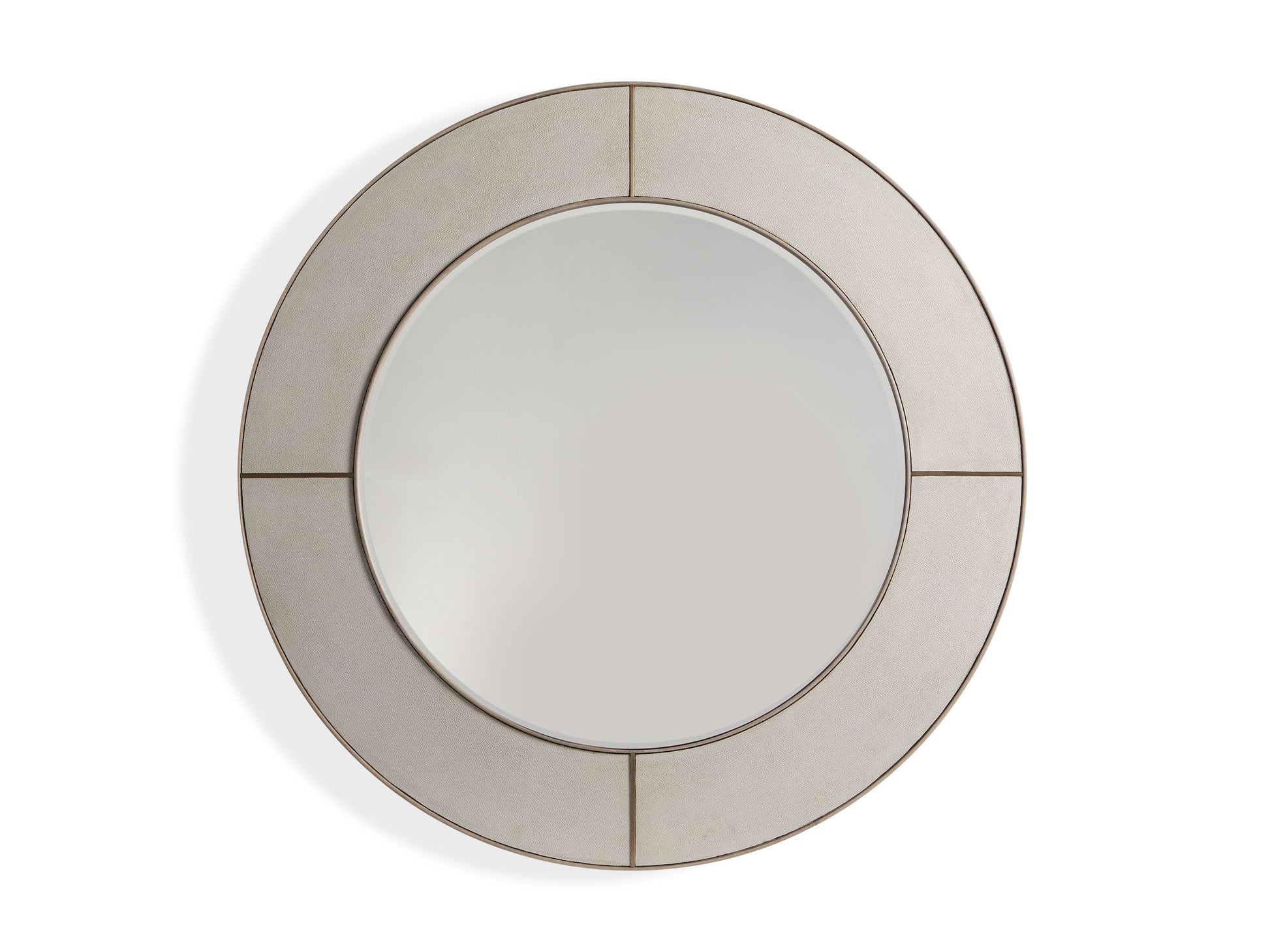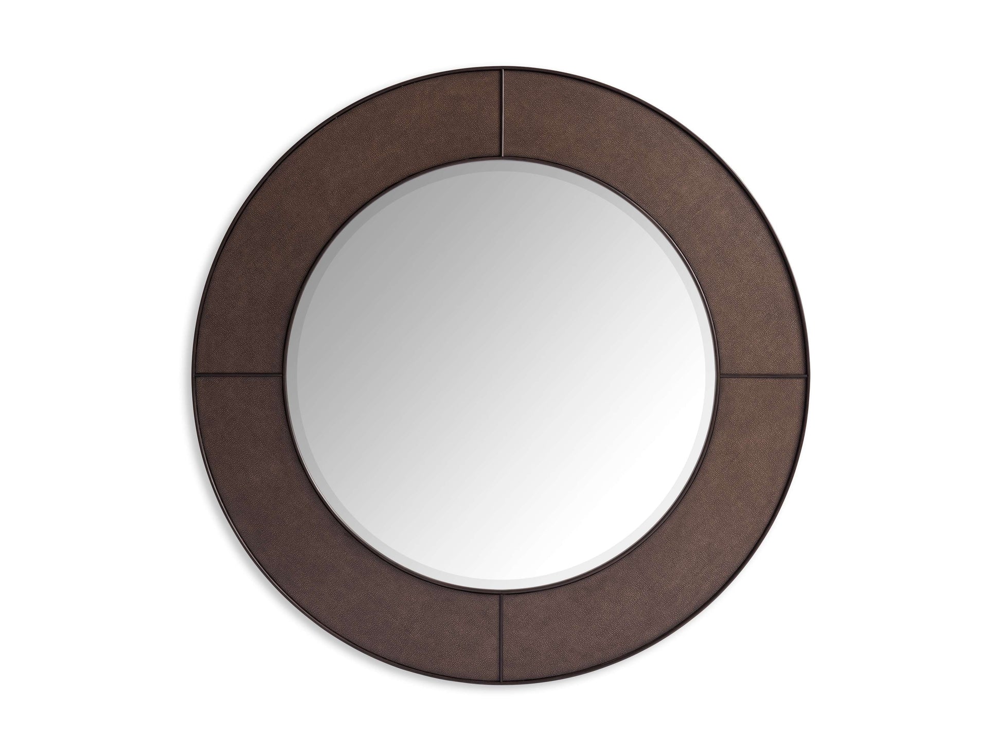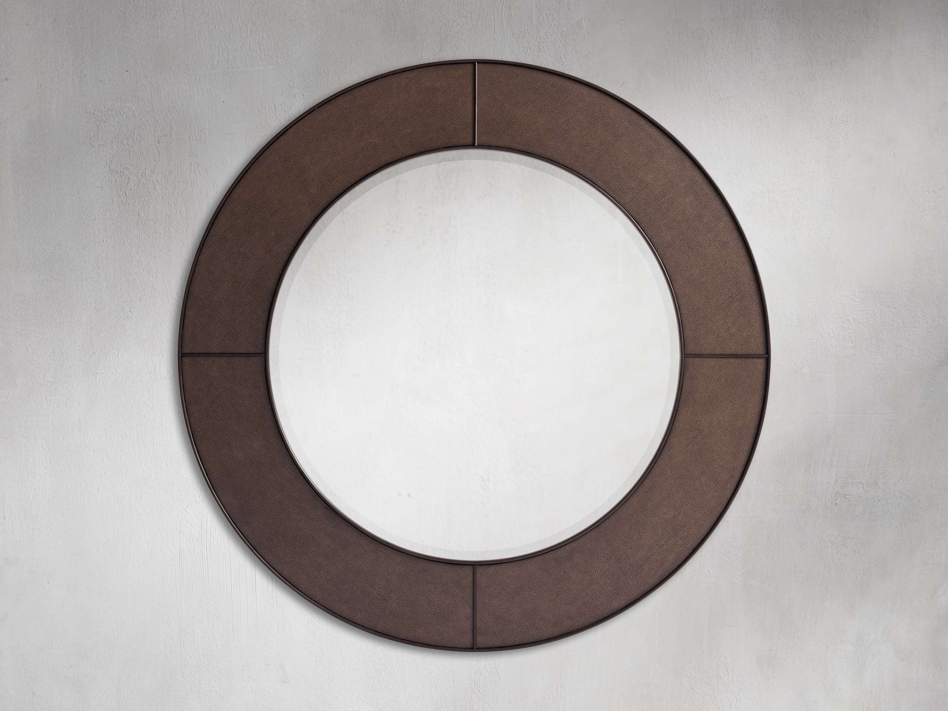 - Mirror framed with rubber wood and shagreen-patterned leather.