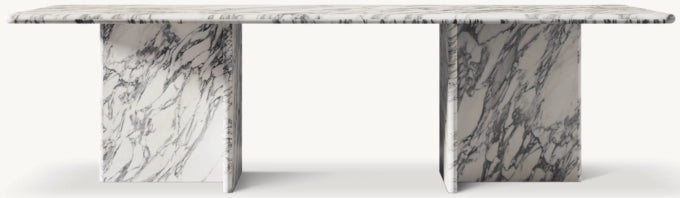 - 84" table is handcrafted of 1½"-thick marble or vein-cut Italian travertine on an engineered wood core