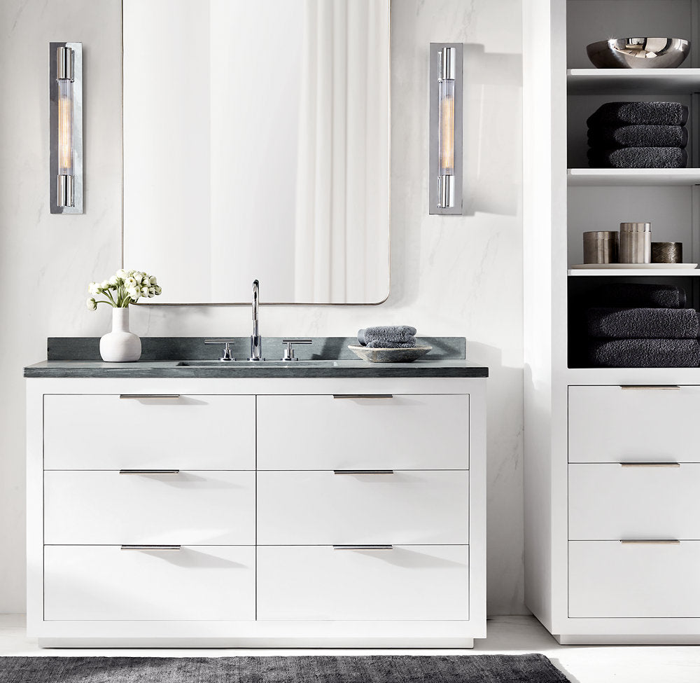 - Polished Chrome, Lacquered Burnished Brass and Bronze finishes are handcrafted of sand-cast brass and K9 glass; Pewter and Weathered Zinc finishes are handcrafted of aluminum and K9 glass