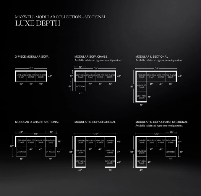 - When configuring a sectional, choose Classic or Luxe for all components