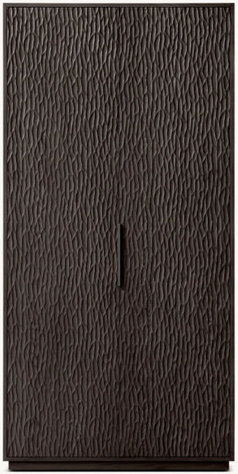 - Oak door fronts feature a deeply textured, chiseled surface in a meticulously crafted pattern