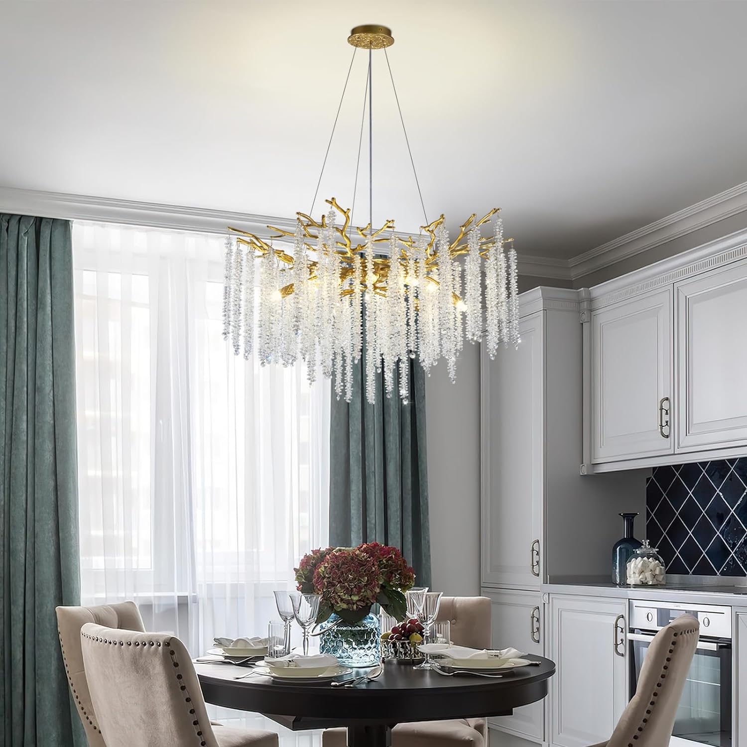 - 【Humanized Installation】The Modern Branch Chandeliers Size Is 30 X 30 X 15.5 Inches And The Dining Room Chandelier Over Cable is 0-66 Inches Adjustable. The Chandelier'S Branches Are Made Of Aluminum Alloy One-Piece Molding, It'S Light Enough And At The Same Time Provides Enough Support. Each Branch Is Removable And Can Be Easily Assembled. Simply Hang The Crystals From The Branches. (Note: There Are Different Sides Of The Branch, Please Install The Chandelier With The Front Side Facing Up, You Can Also Refer To The Installation Instructions For Installation)