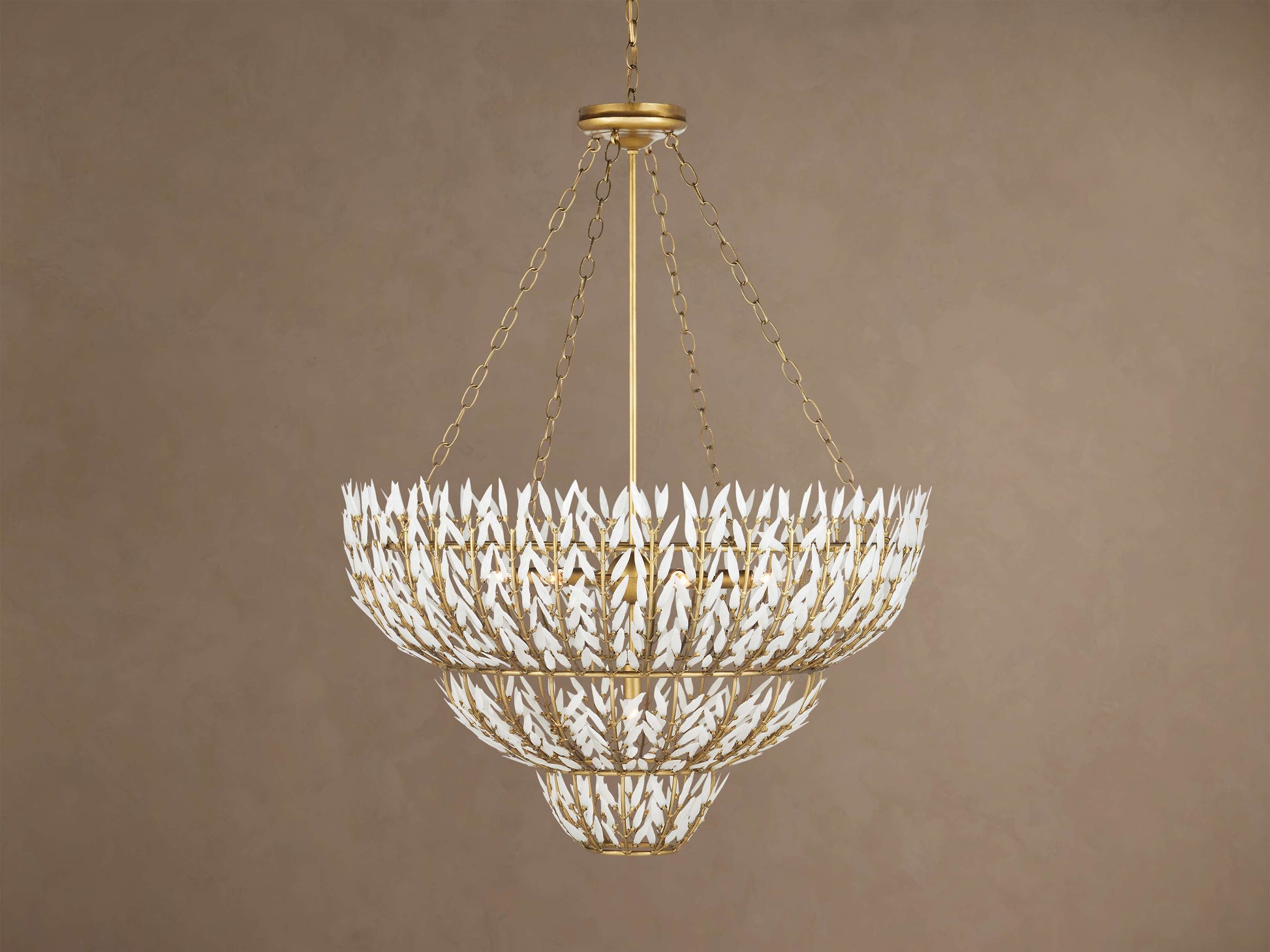 - 56" brass-finished chain measures 8' long.
