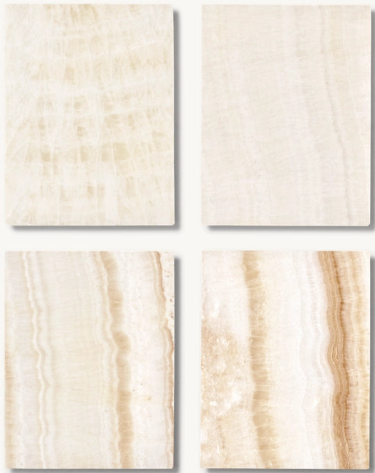- Onyx is buffed and sealed for a polished finish that highlights its distinctive striations and subtle translucency