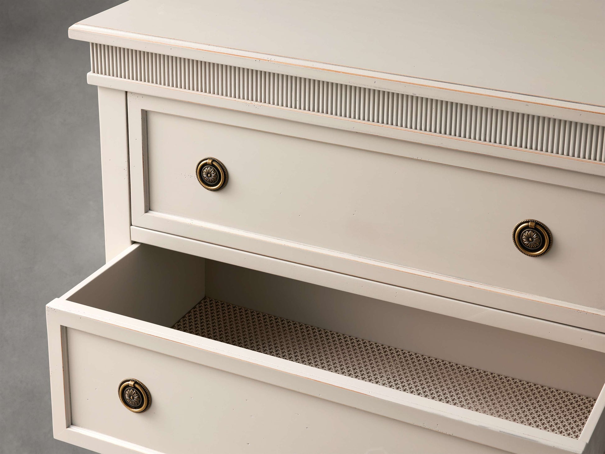 A testament to timeless elegance, our Ottavia Collection offers a captivating blend of Italian craftsmanship and ornate design. Crafted from Tanganyika wood complemented by elegant reeded detailing, each piece exudes a sense of refined luxury.