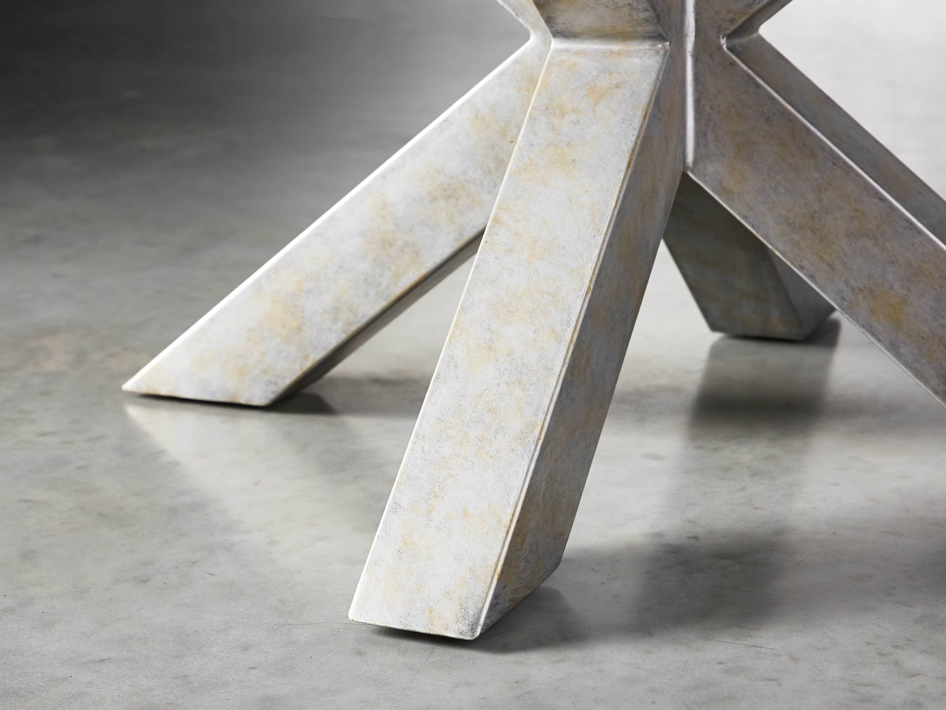 - Handcrafted argento pyrite stone tabletops are assembled using rare arengto pyrite minerals that are formed in active volcanoes and are complemented by an iron base featuring an antiqued, dark grey patina.