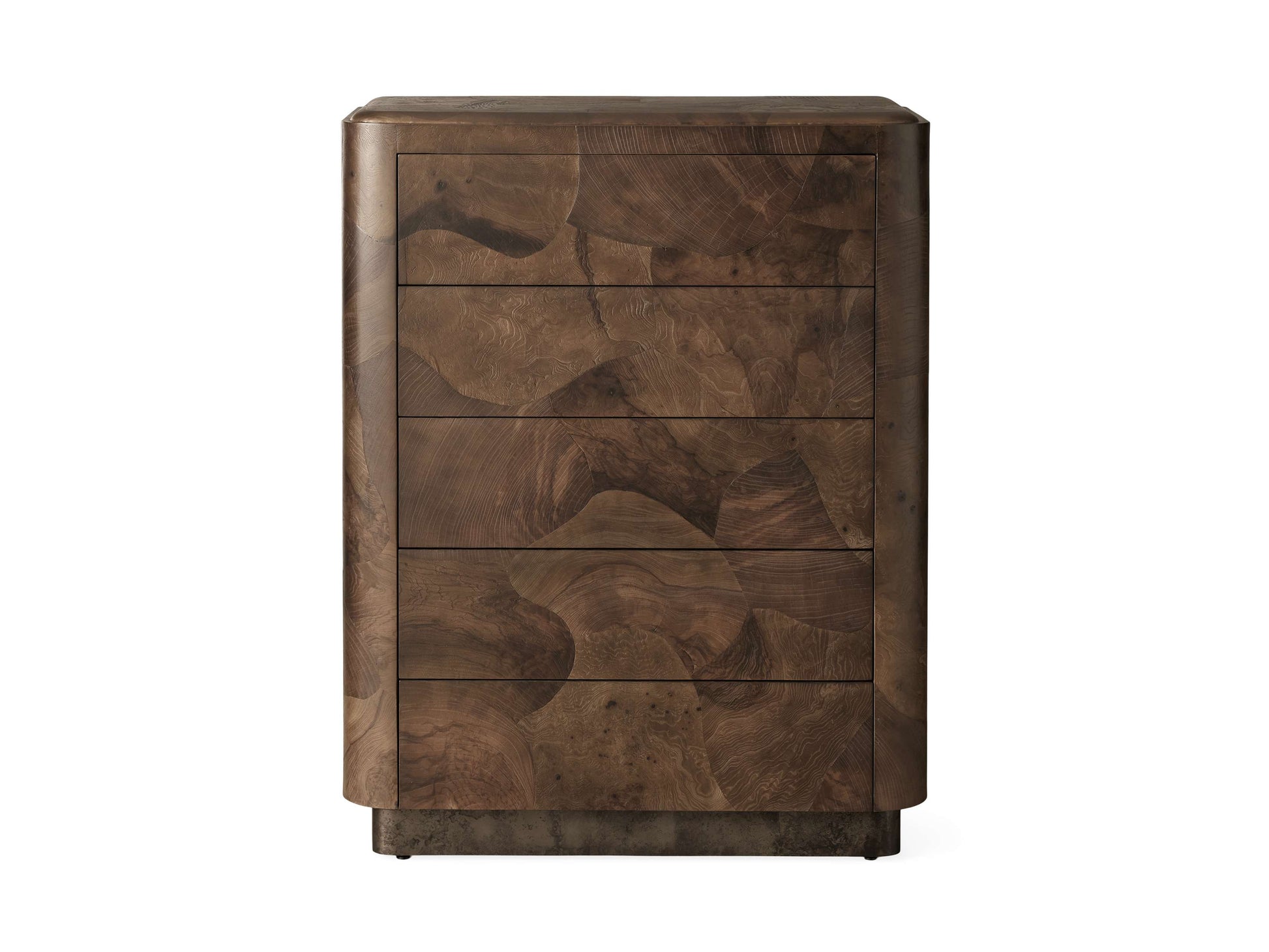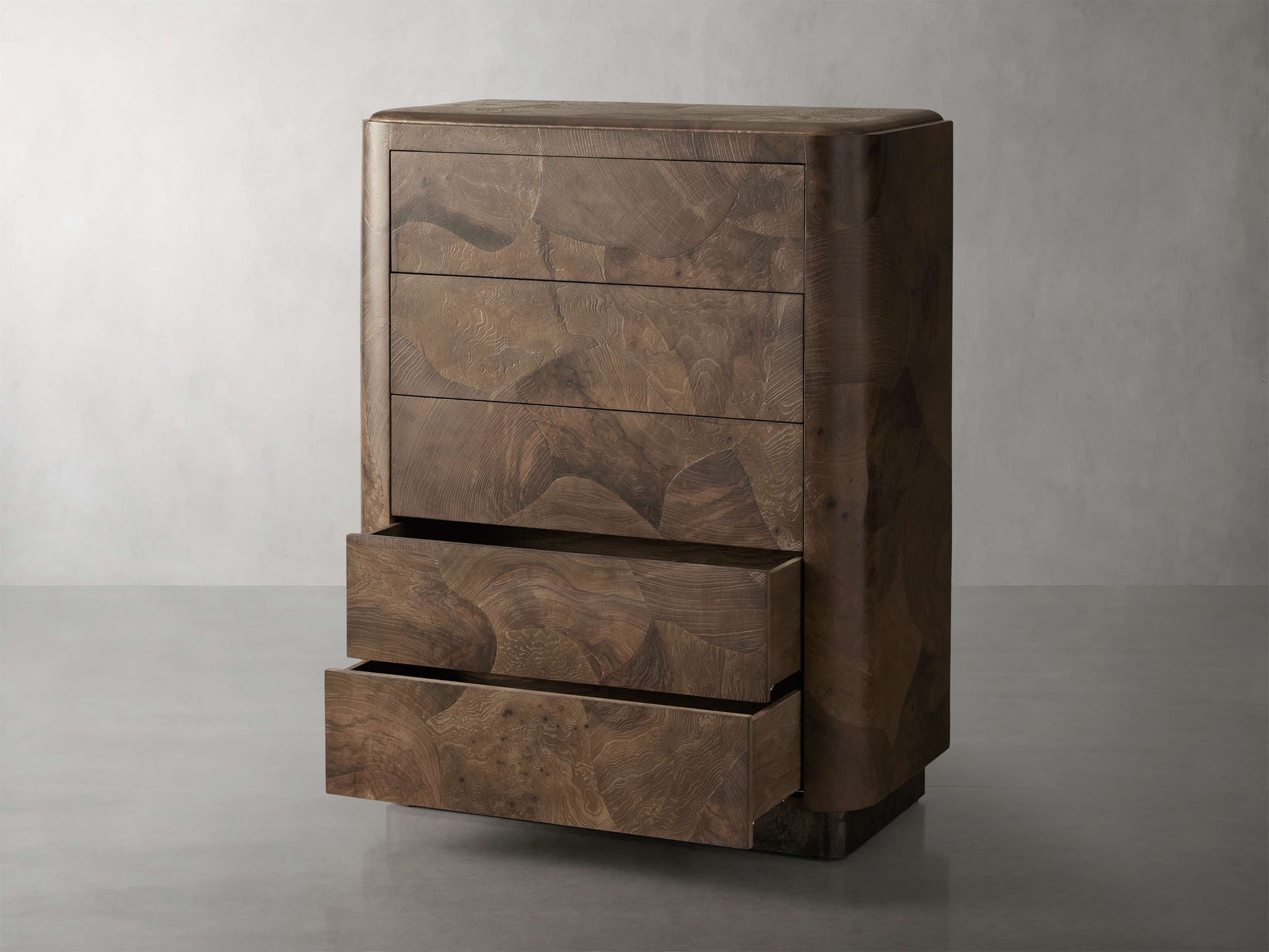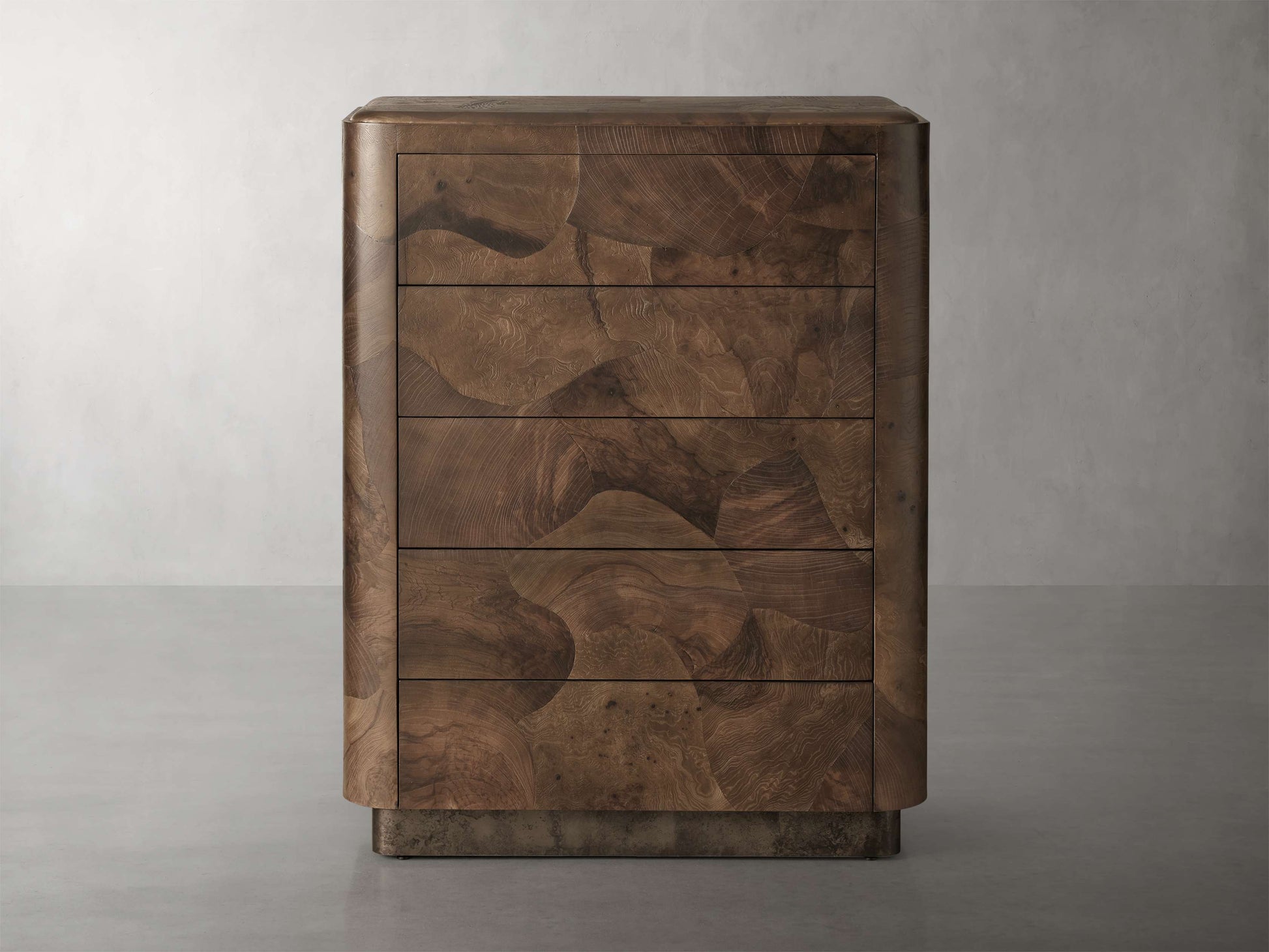Following heavy storms, our artisan partners in Mexico search the forest for fallen trees of Mexican ash, salvaging as many as they can. Each log is oyster-cut, arranged, and stained by hand, united with fragments of sustainably grown European ash burl to create incredible, mosaic-like surfaces. Bases crafted from naturally oxidized metal add the perfect contrast, together forming the rustic beauty of our remarkable Polanco Collection.