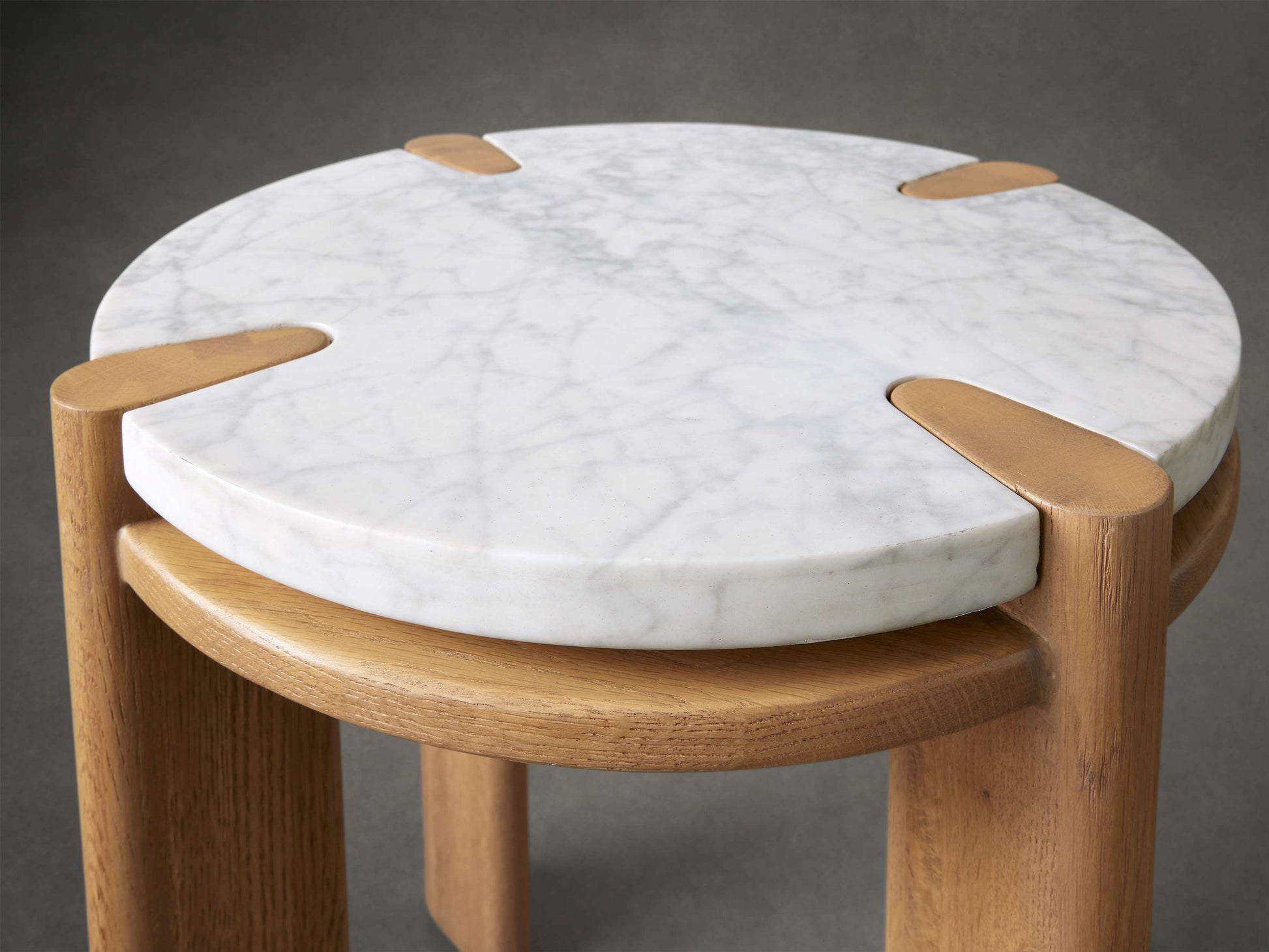 Exquisite natural materials offer a rustic yet refined feel for any aesthetic. Complement your living space or conversation area with our Pyet Collection, featuring gorgeous stone tabletops and solid oak wood bases with unique wood inlay details.