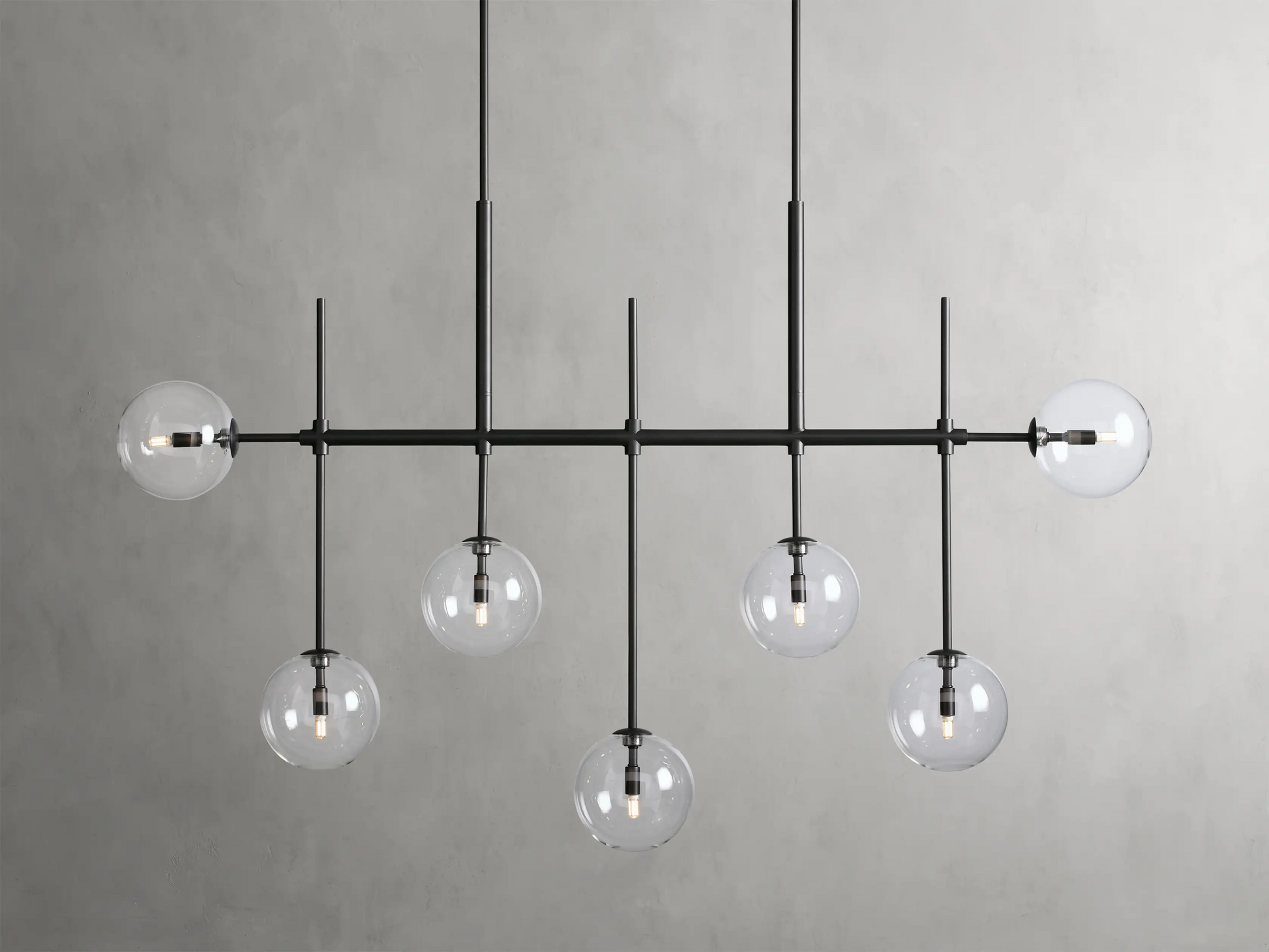 Statement-making fixtures with chic, modern flair, our Rosca Lighting Collection is artisan-crafted from iron with complementing finishes to elevate your space. Stunning hand-blown glass globes encase the bulbs, dispersing light at every angle.